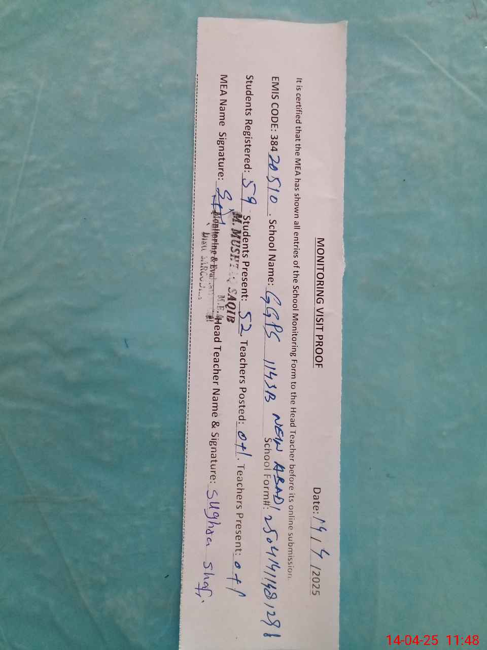 | EMIS Code: 38420510 | Name of School: GGPS CHAK NO.114 SB NEW ABADI | |||