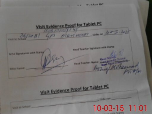 | Attendance Register | Head Teacher | MEA with School | Visit Proof |