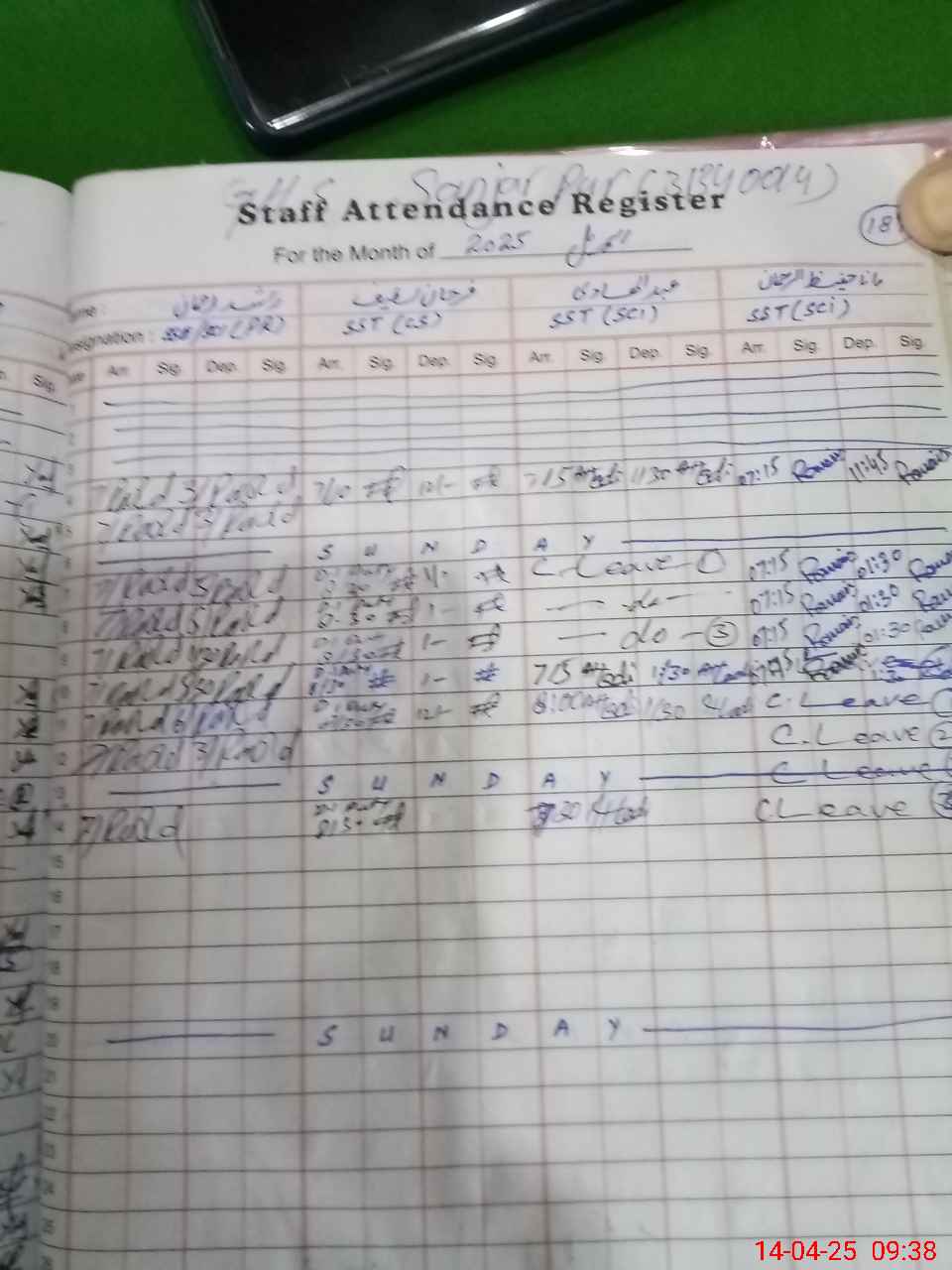 | 31**** | Ra**** Ab**** Qa**** | 2 | 0 | 16 | 0 | 0 | 0 | 0 | 0 | 0 | 0 | Exam Duty | |
