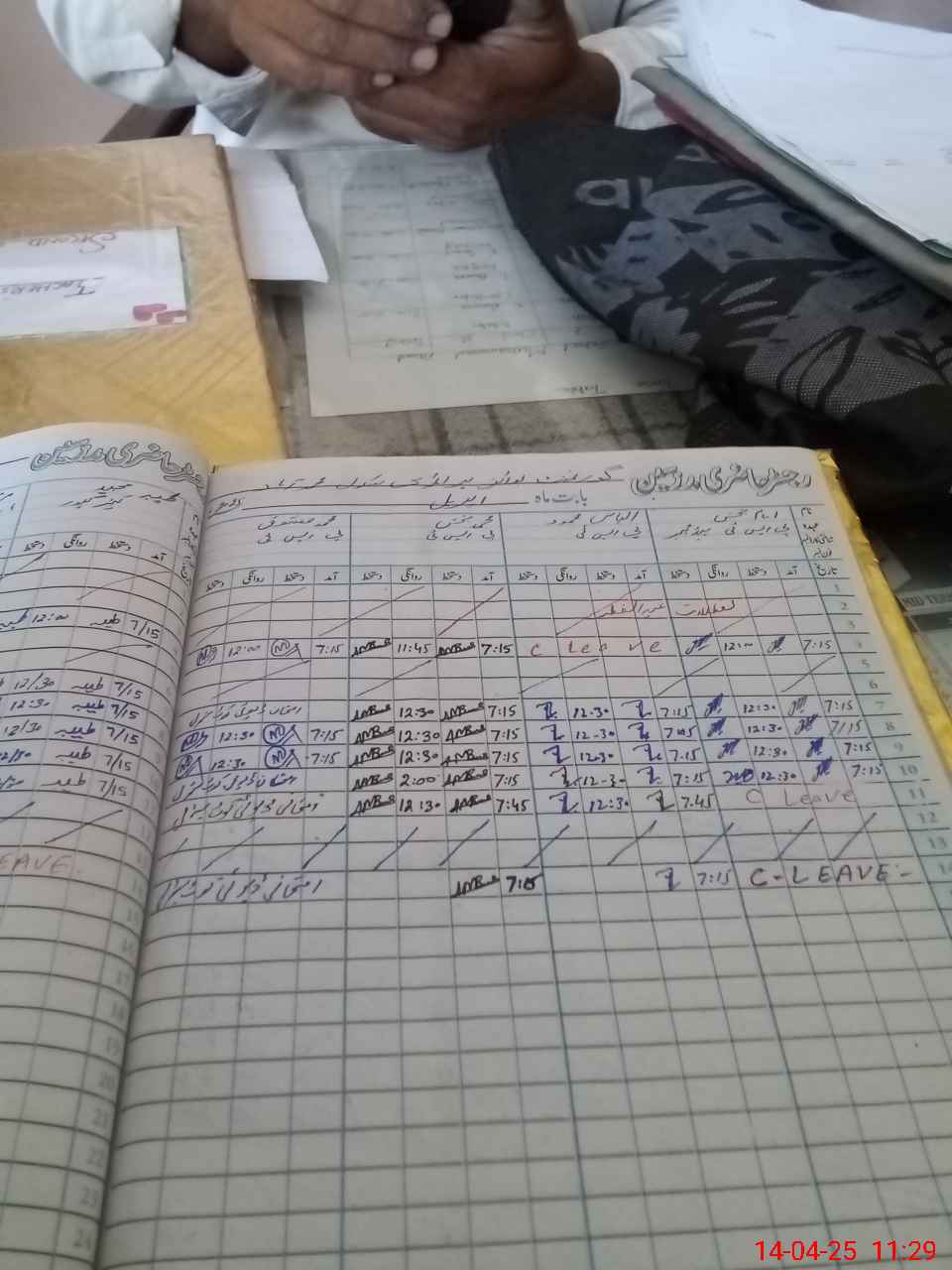 | CNIC | Full Name | Designation | R/C | Absence During Last Calender Month |