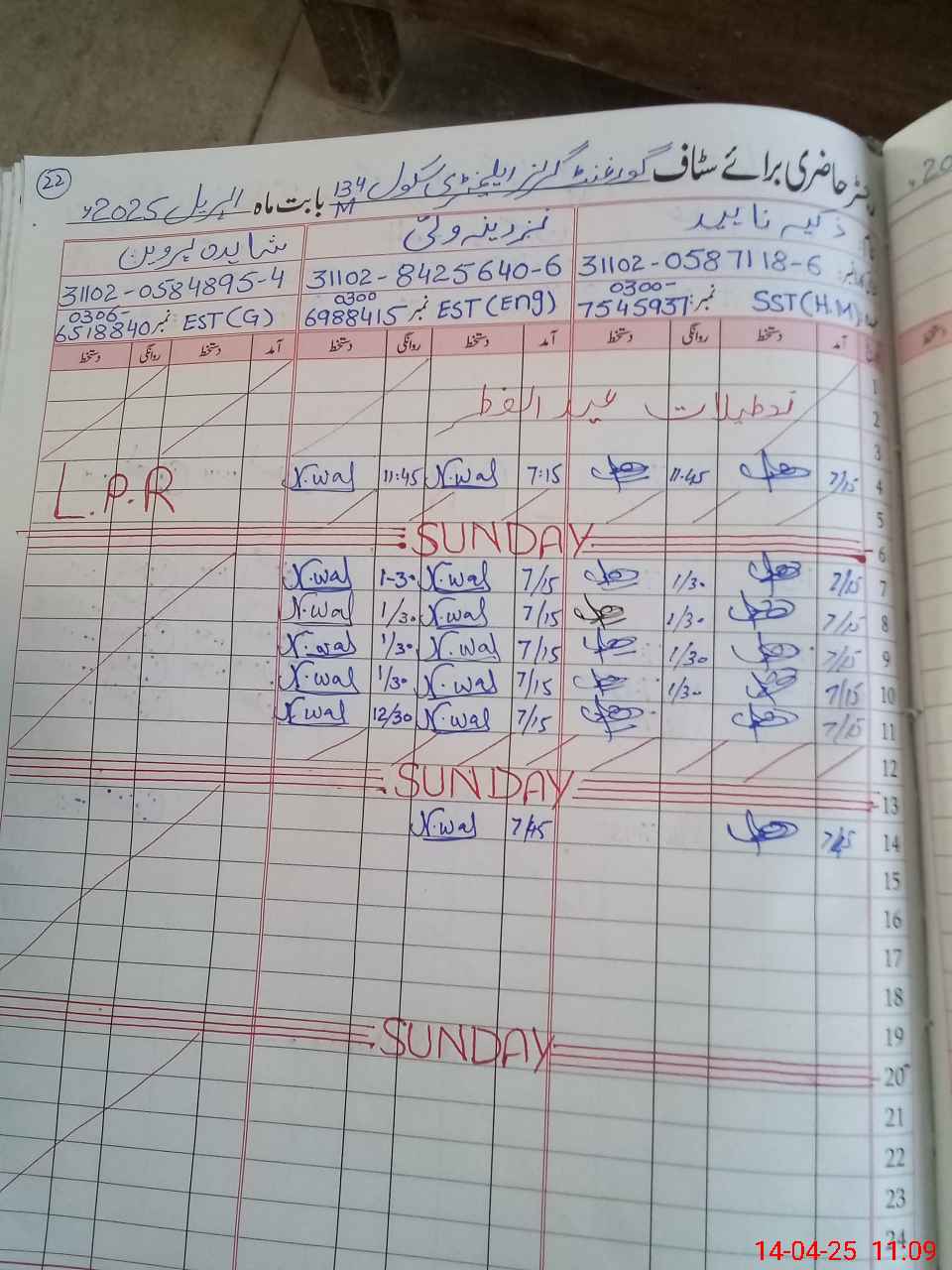 | CNIC | Full Name | Designation | R/C | Absence During Last Calender Month |