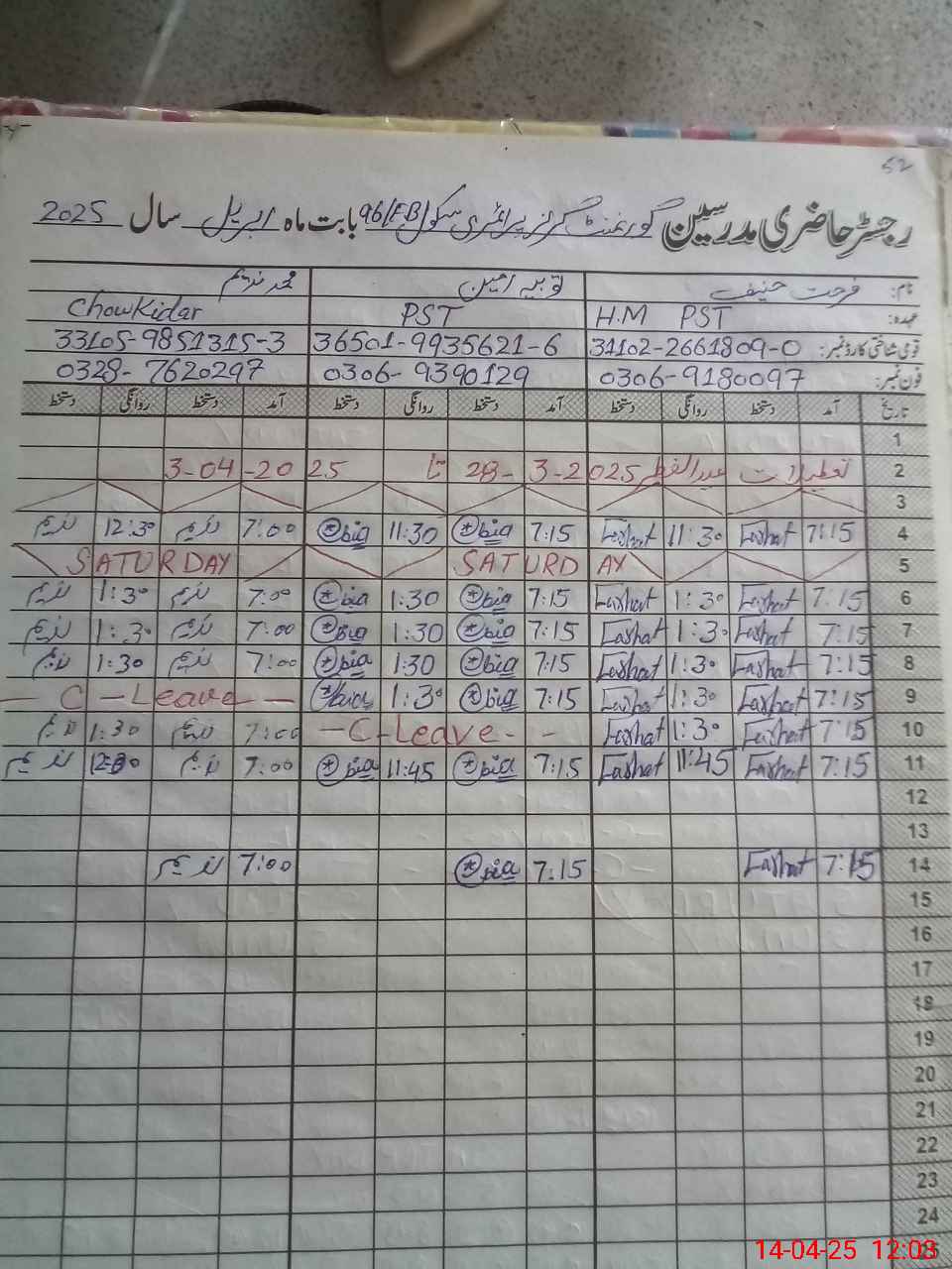 | Name: FA**** HA**** Designation: (School Headmaster's/Headmistress's) PST Phone/Cell Number: 03**** |