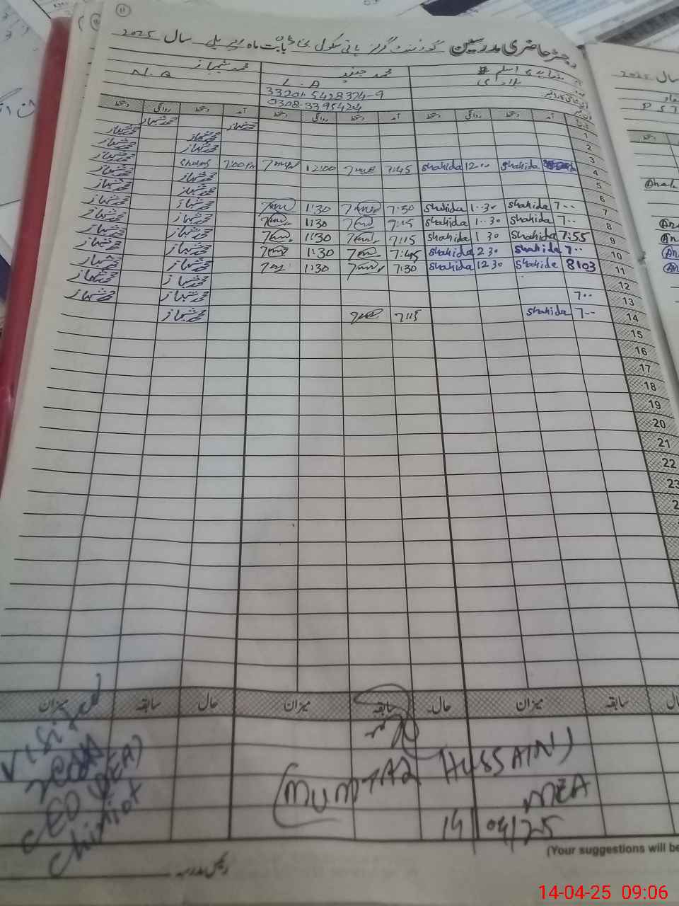 | Name: Mi**** Sh**** Designation: (School Headmaster's/Headmistress's) HMs Phone/Cell Number: 03**** 99**** |