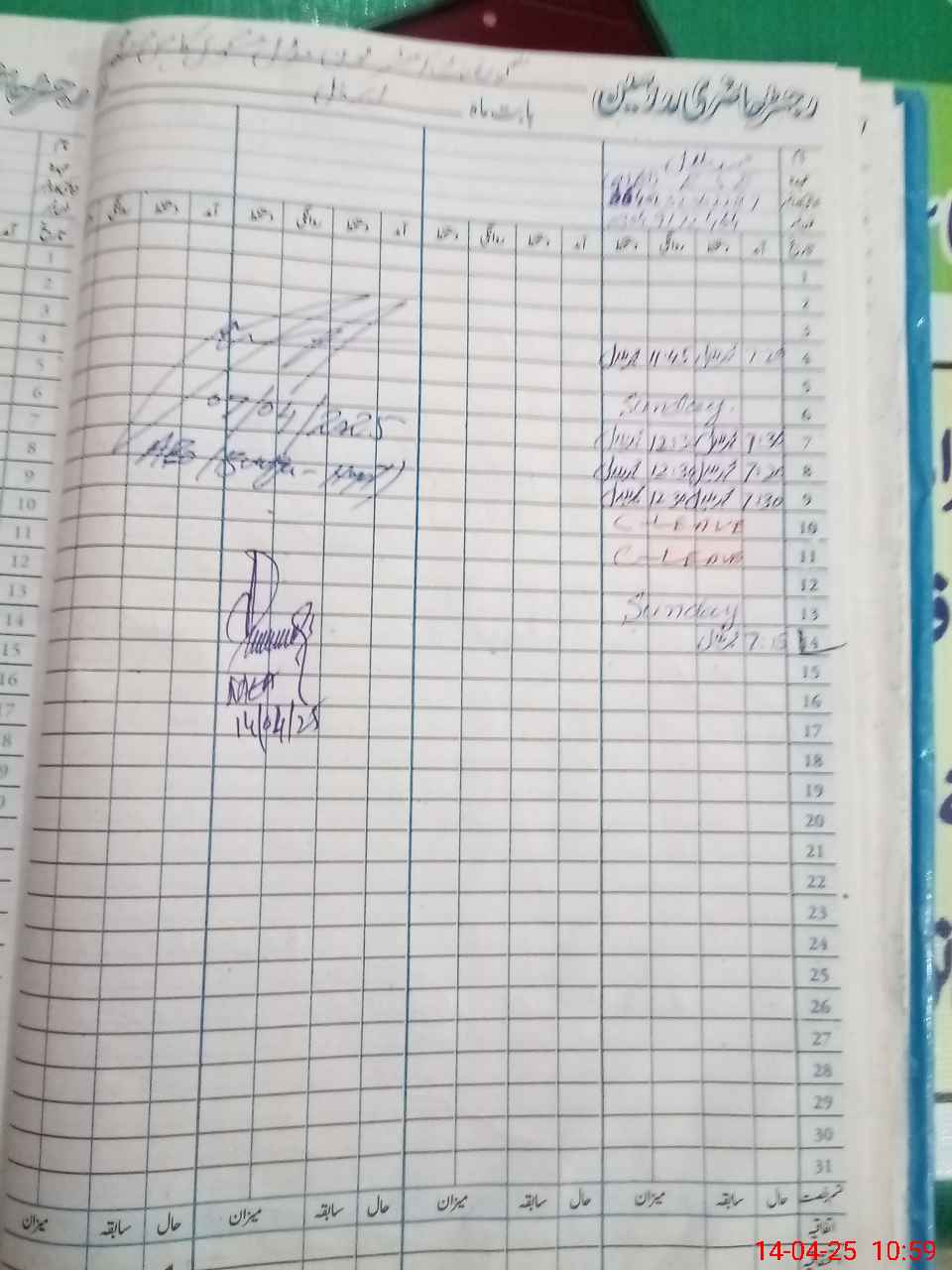 | CNIC | Full Name | Designation | R/C | Absence During Last Calender Month |