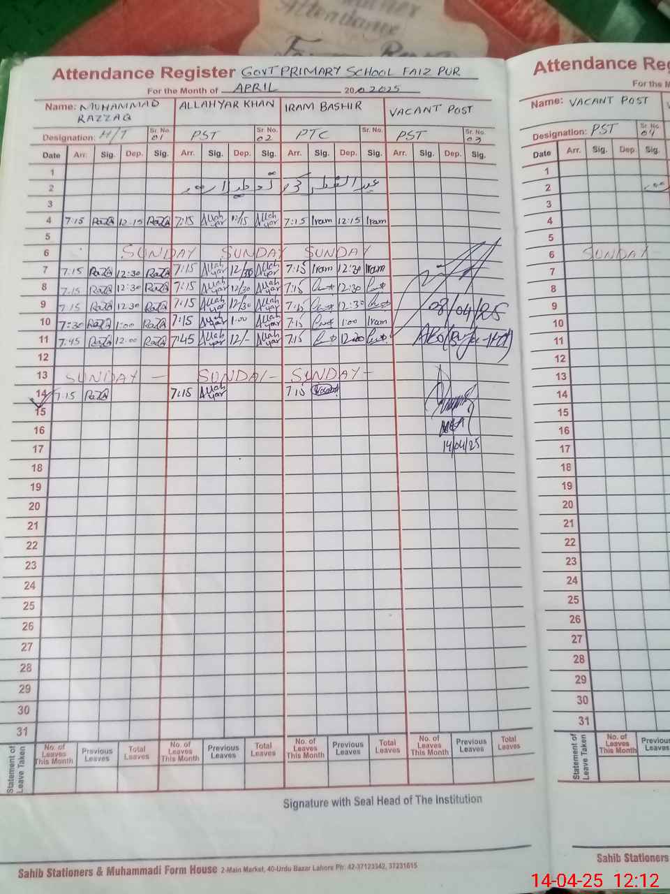 | Name: Mu**** Ra**** Designation: (School Headmaster's/Headmistress's) PST Phone/Cell Number: 03**** |