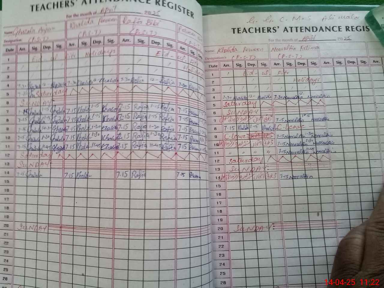 | Monitoring Date: 14-04-2025 | Start Time: 14-04-2025 10:55 AM | End Time: 14-04-2025 11:30 AM | Name of MEA: Ab**** Kh**** | |