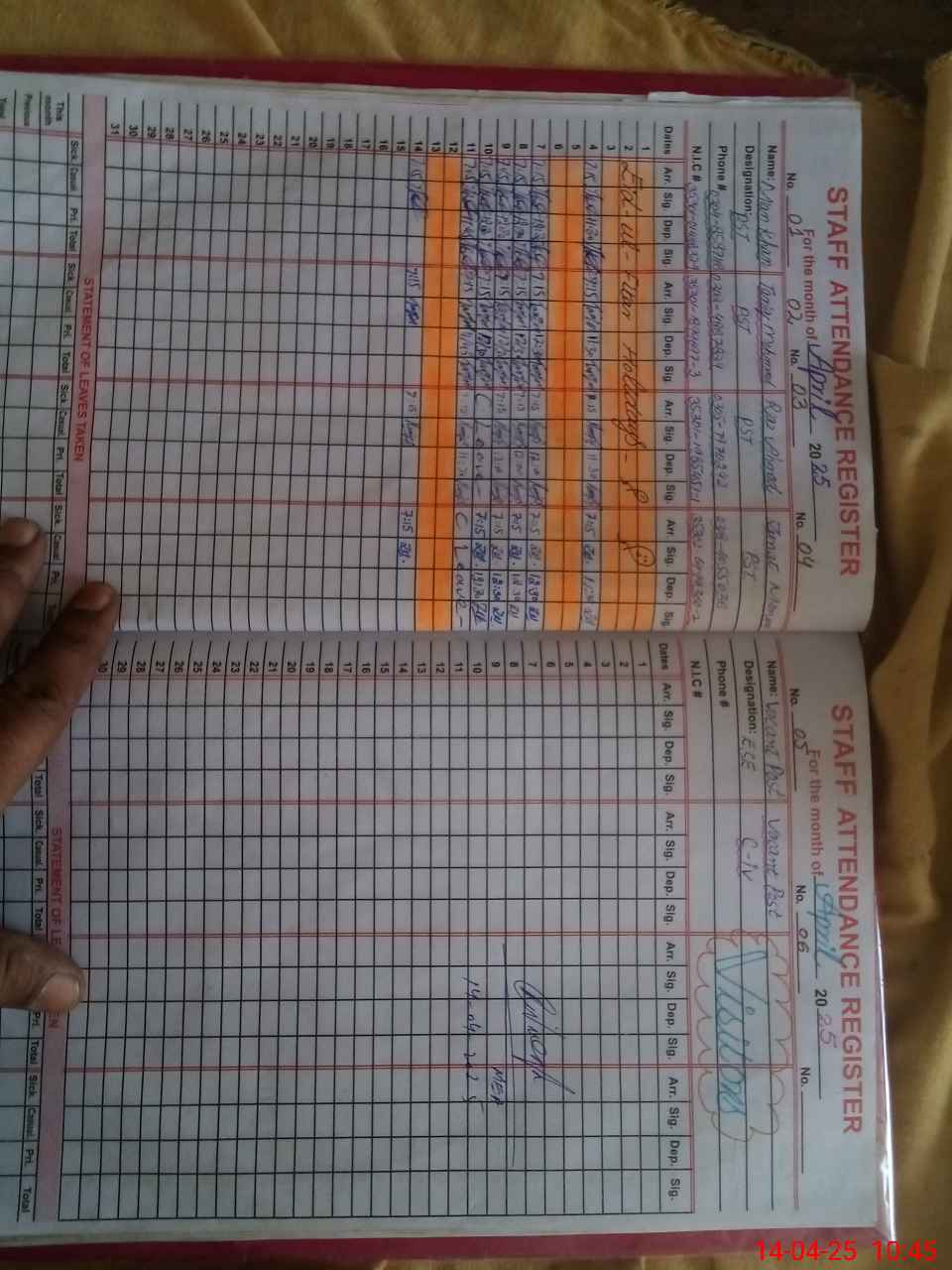 | CNIC | Full Name | Designation | R/C | Absence During Last Calender Month |