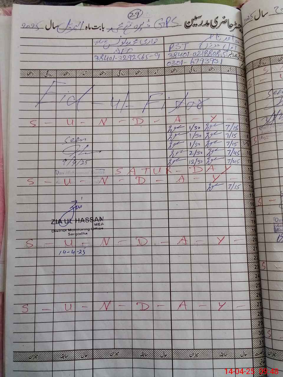 | Name: HA**** NA**** Designation: (School Headmaster's/Headmistress's) PST Phone/Cell Number: 03**** |