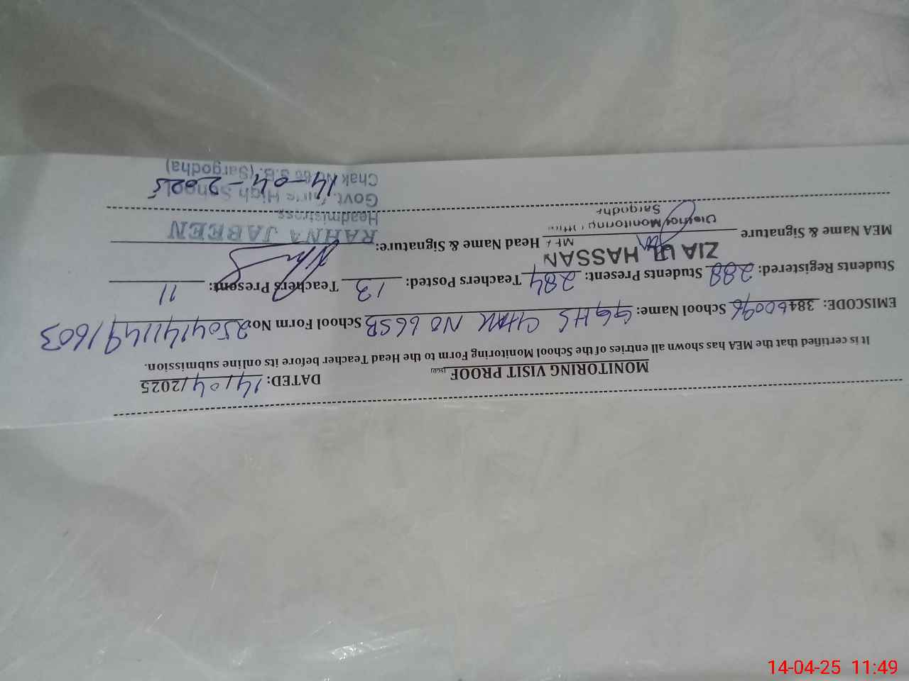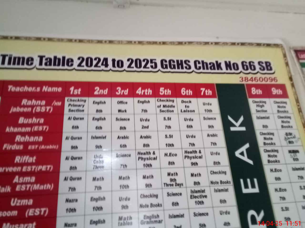 | EMIS Code: 38460096 | Name of School: GGHS CHAK NO.66 SB | |||