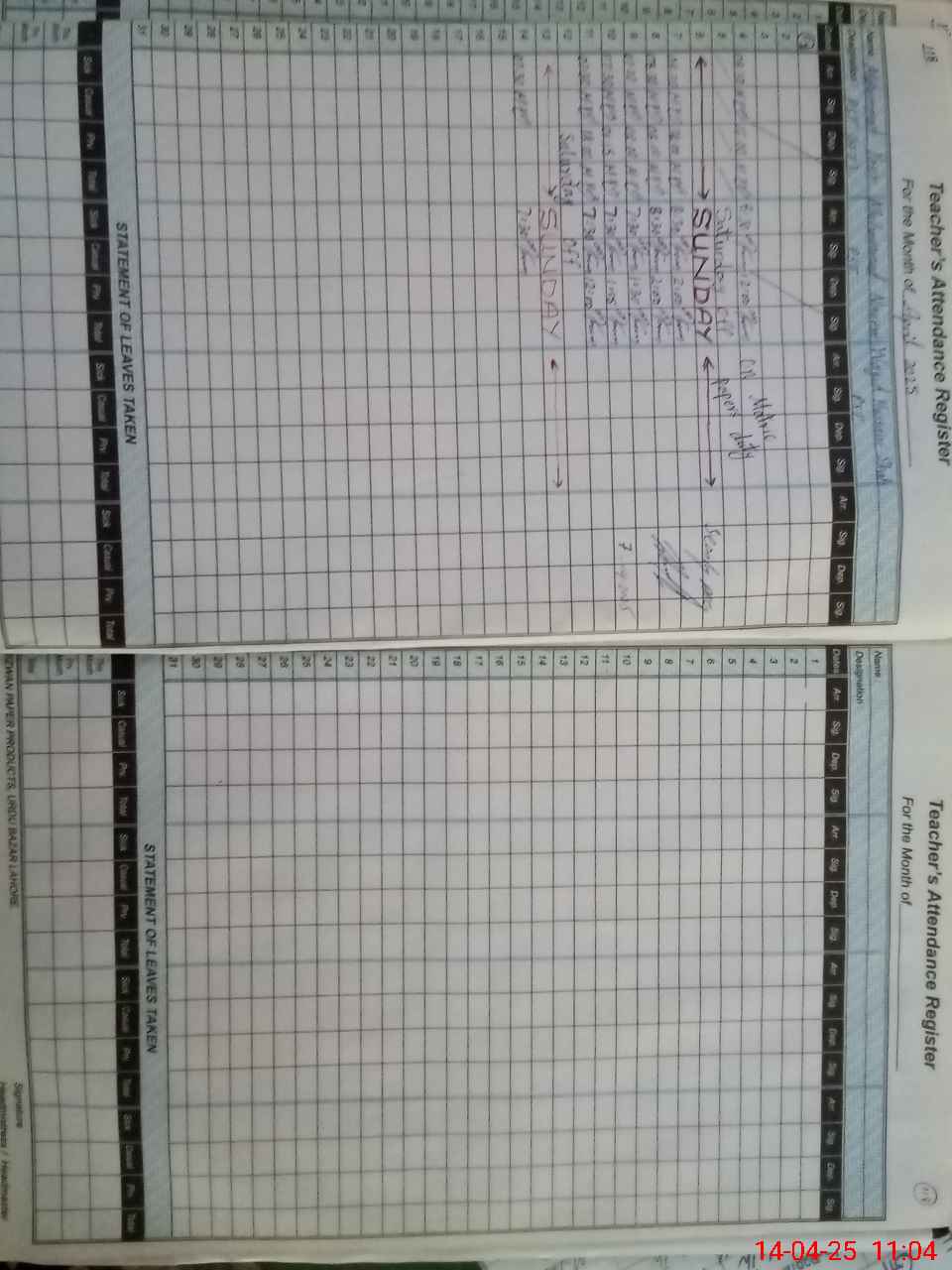 | 37**** | Wa**** Hu**** Sh**** | PST | Temporary | 0 | 21 | 0 | 0 | 0 | 0 | 0 | 0 | 0 | Exam Duty |