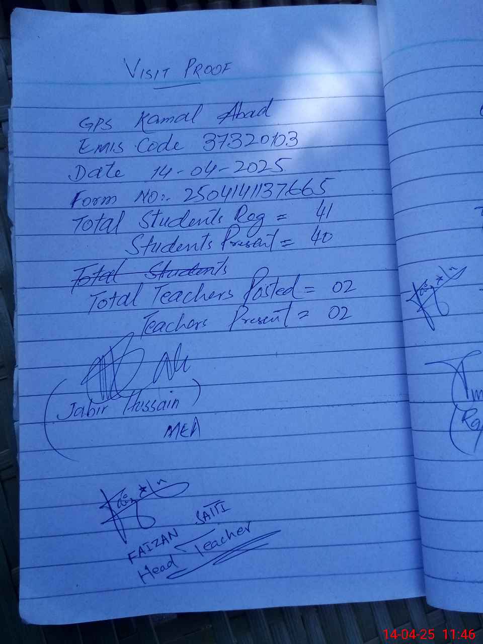 | EMIS Code: 37320103 | Name of School: GPS KAMAL ABAD | |||