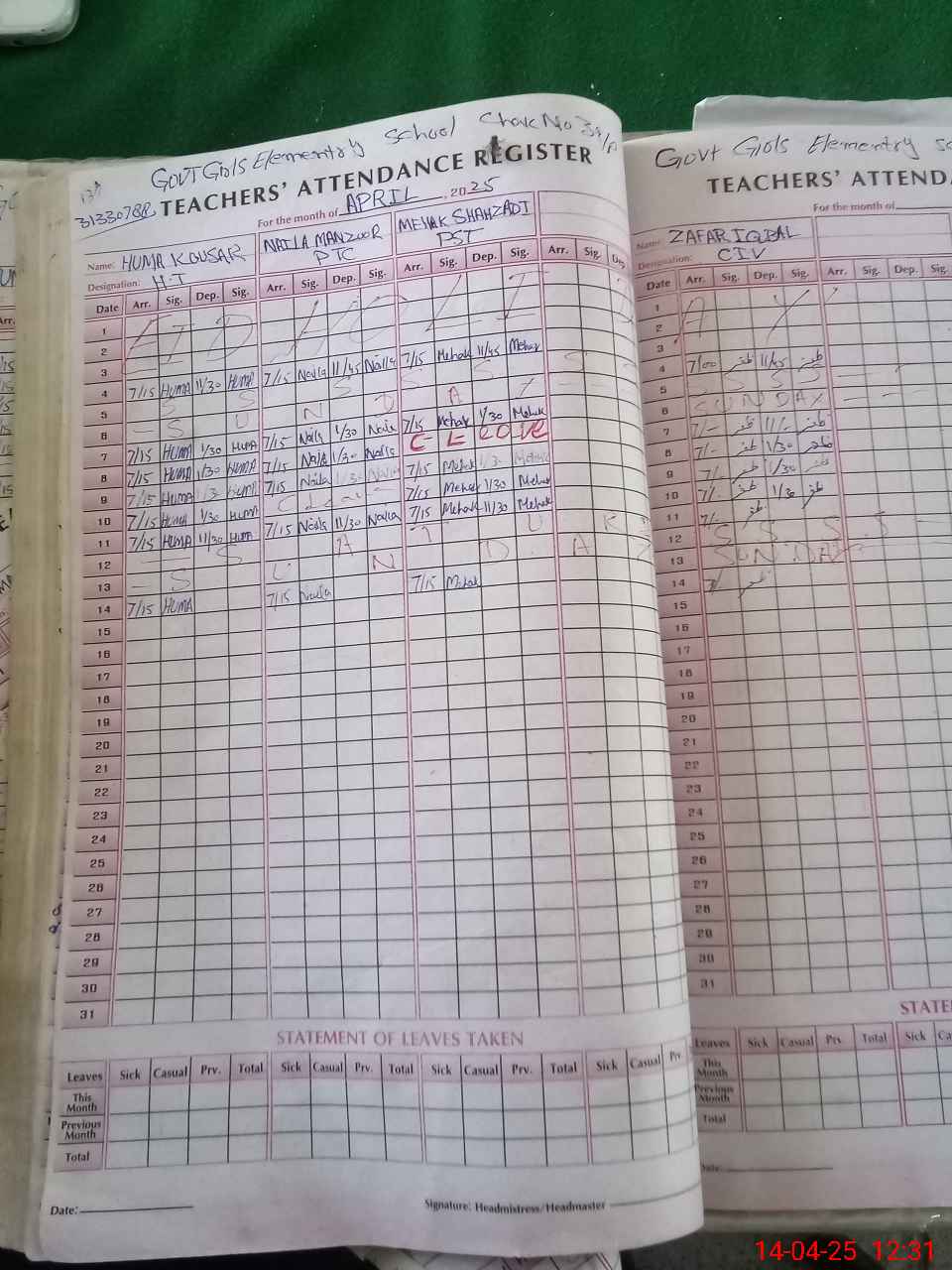 | 31**** | Za**** Iq**** | C4 | Regular | 0 | 0 | 0 | 0 | 0 | 0 | 0 | 0 | 0 | Absent (Un-Authorized) |