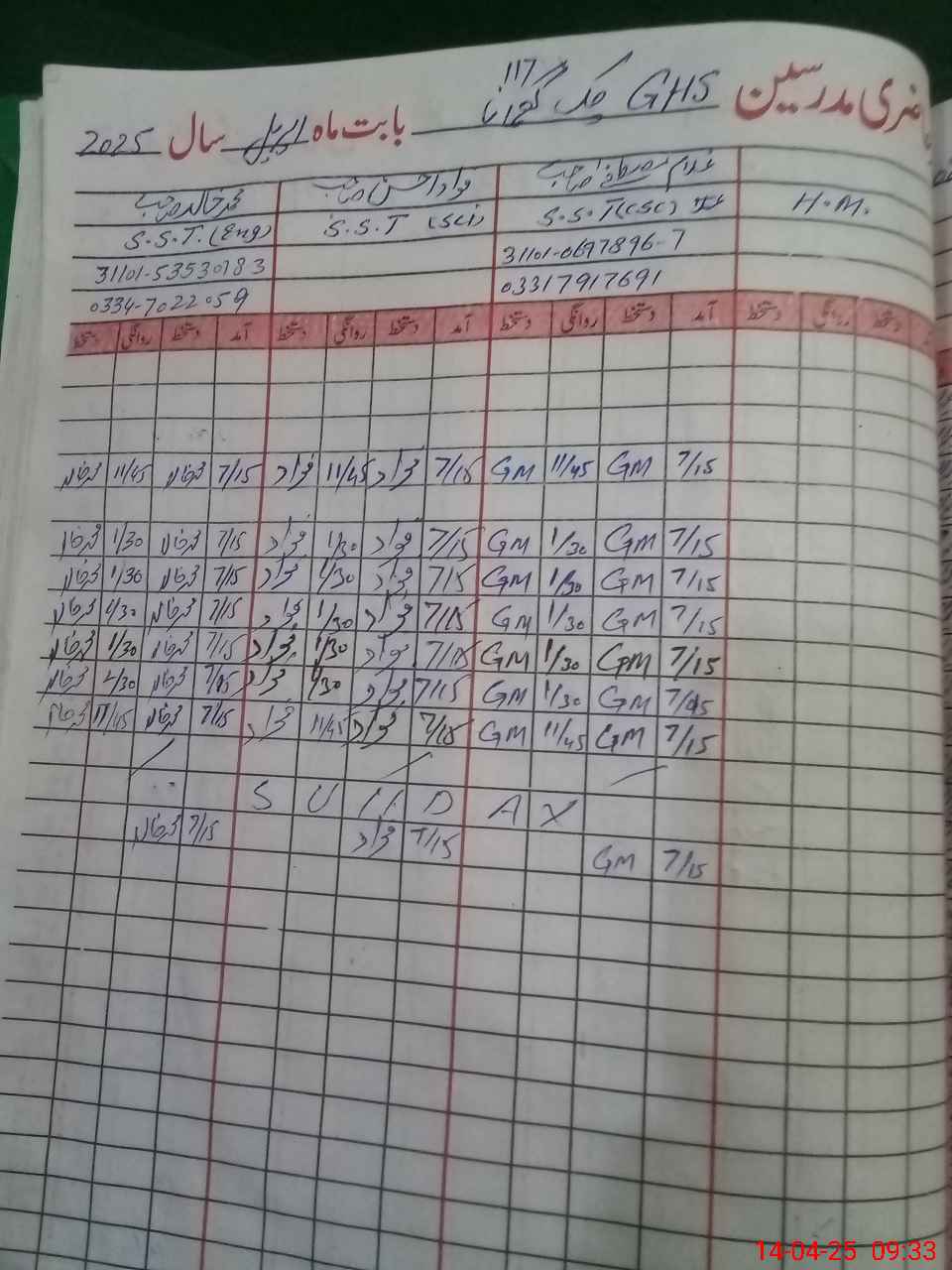 | EMIS Code: 31110025 | Name of School: GHS CHAK GHUMANA | |||