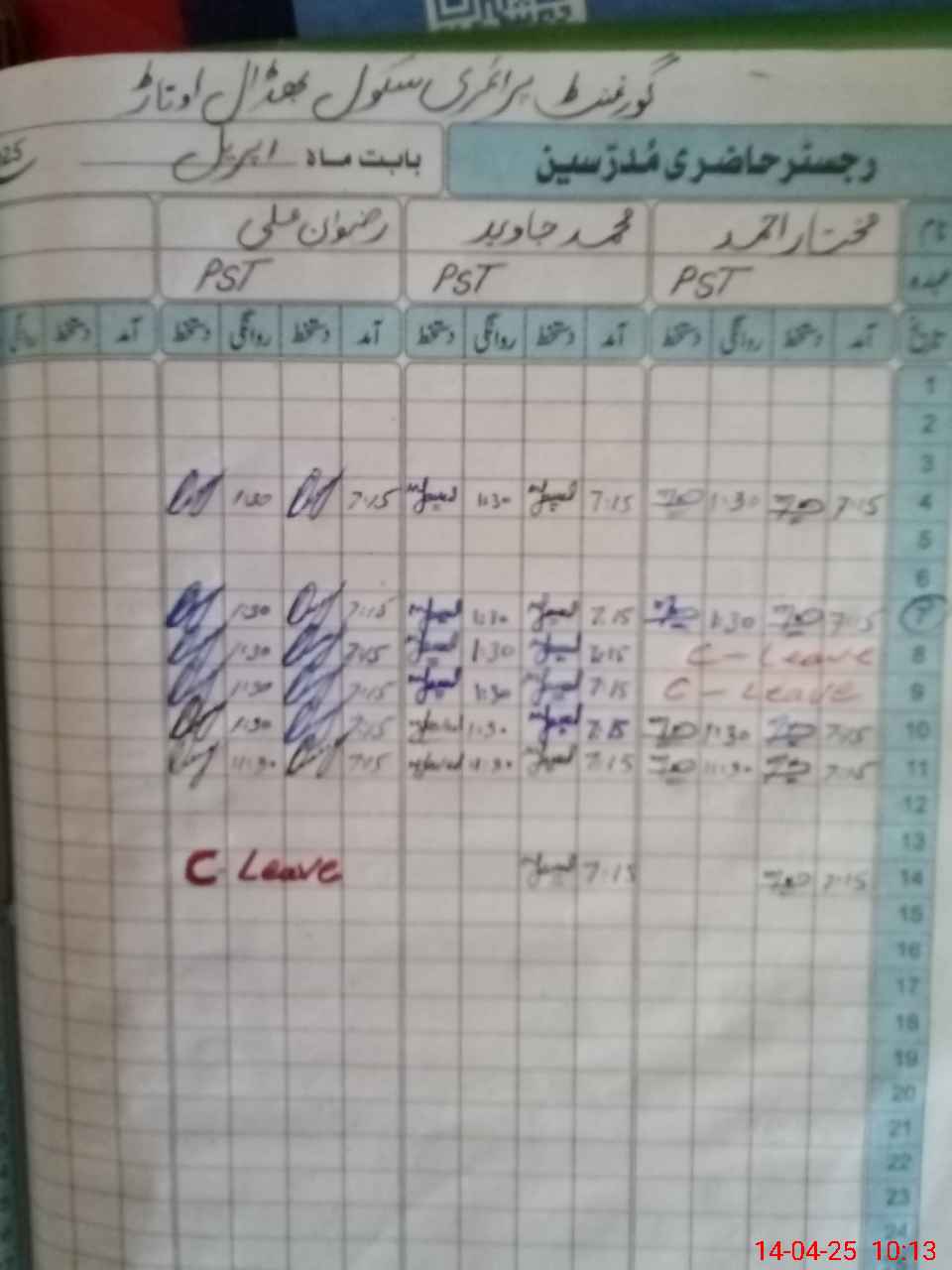 | CNIC | Full Name | Designation | R/C | Absence During Last Calender Month |