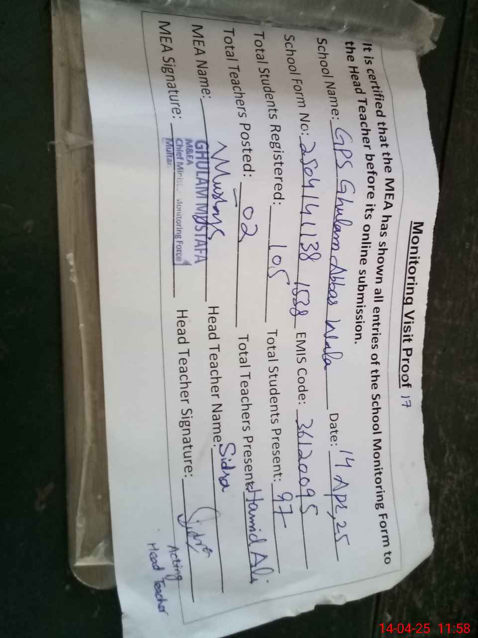 | EMIS Code: 36120095 | Name of School: GPS GHULAM ABAS WALA JALAL PUR KHAKHI TEH.SHUJABAD | |||