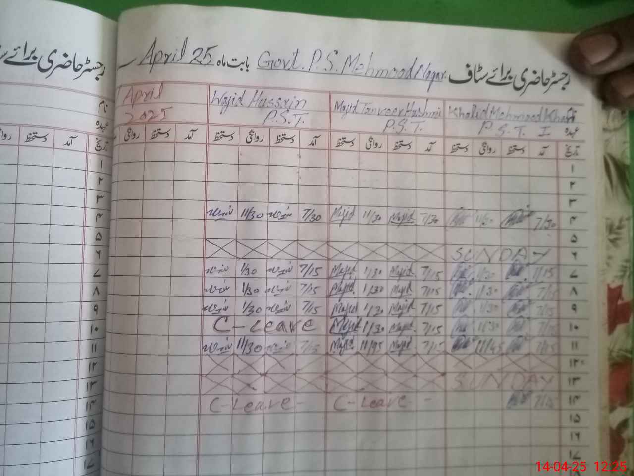 | CNIC | Full Name | Designation | R/C | Absence During Last Calender Month |