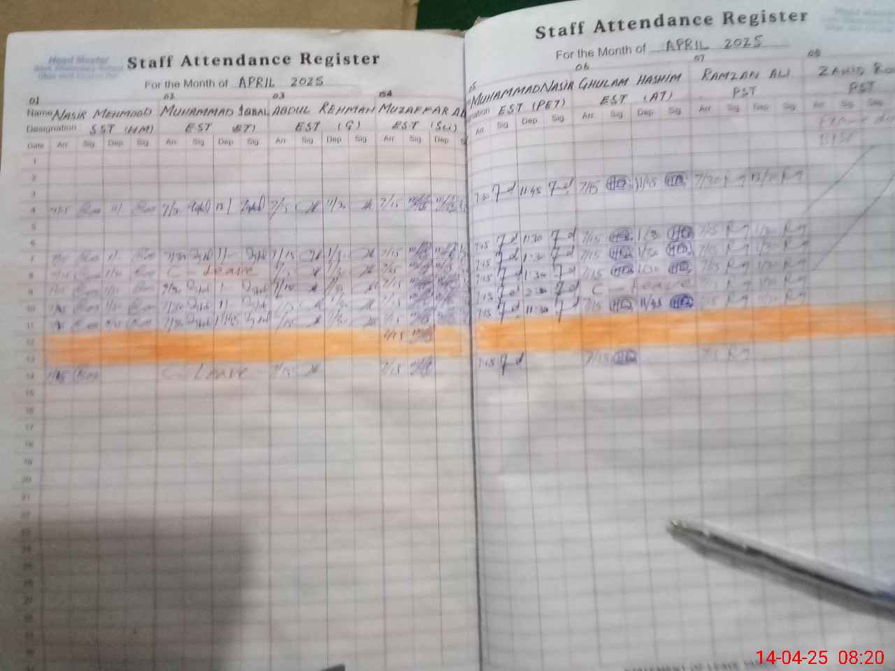 | CNIC | Full Name | Designation | R/C | Absence During Last Calender Month |