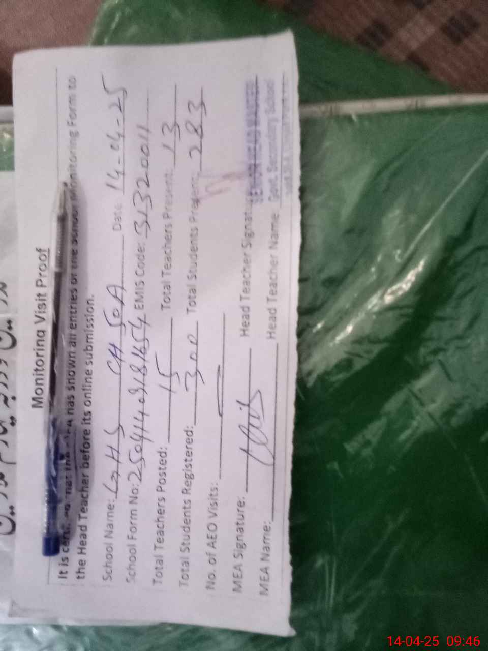 | EMIS Code: 31320011 | Name of School: GHS CHAK NO 50/A | |||