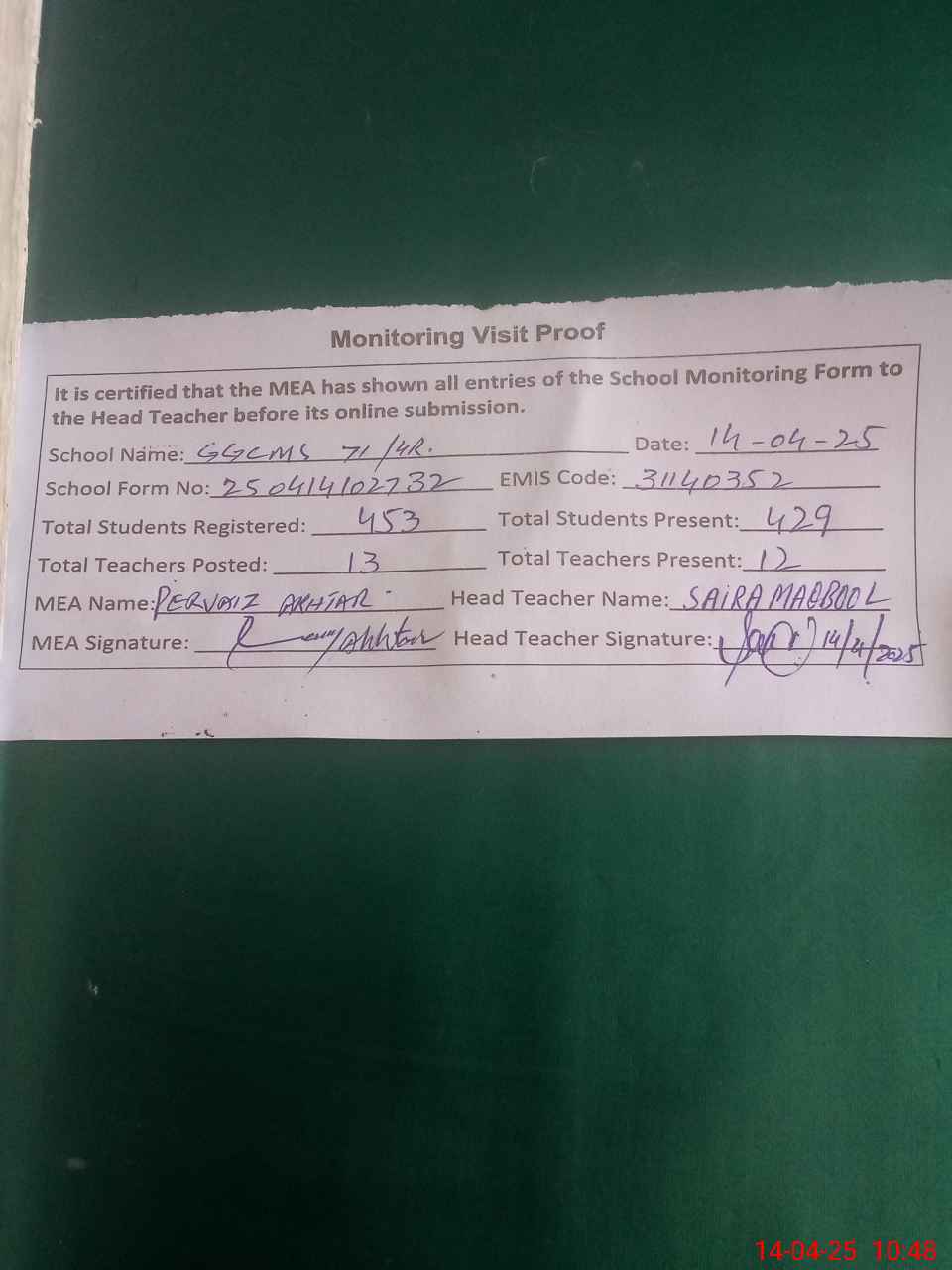 | EMIS Code: 31140352 | Name of School: GGCMS 71/4-R | |||