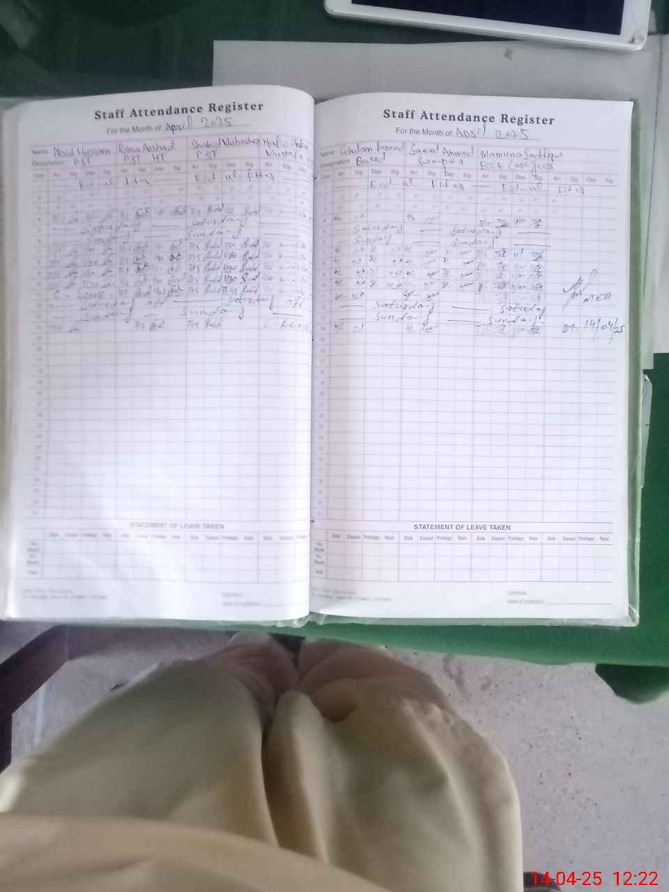 | 32**** | Ab**** Hu**** | PST | Regular | 0 | 0 | 0 | 0 | 0 | 0 | 0 | 0 | 0 | Exam Duty |