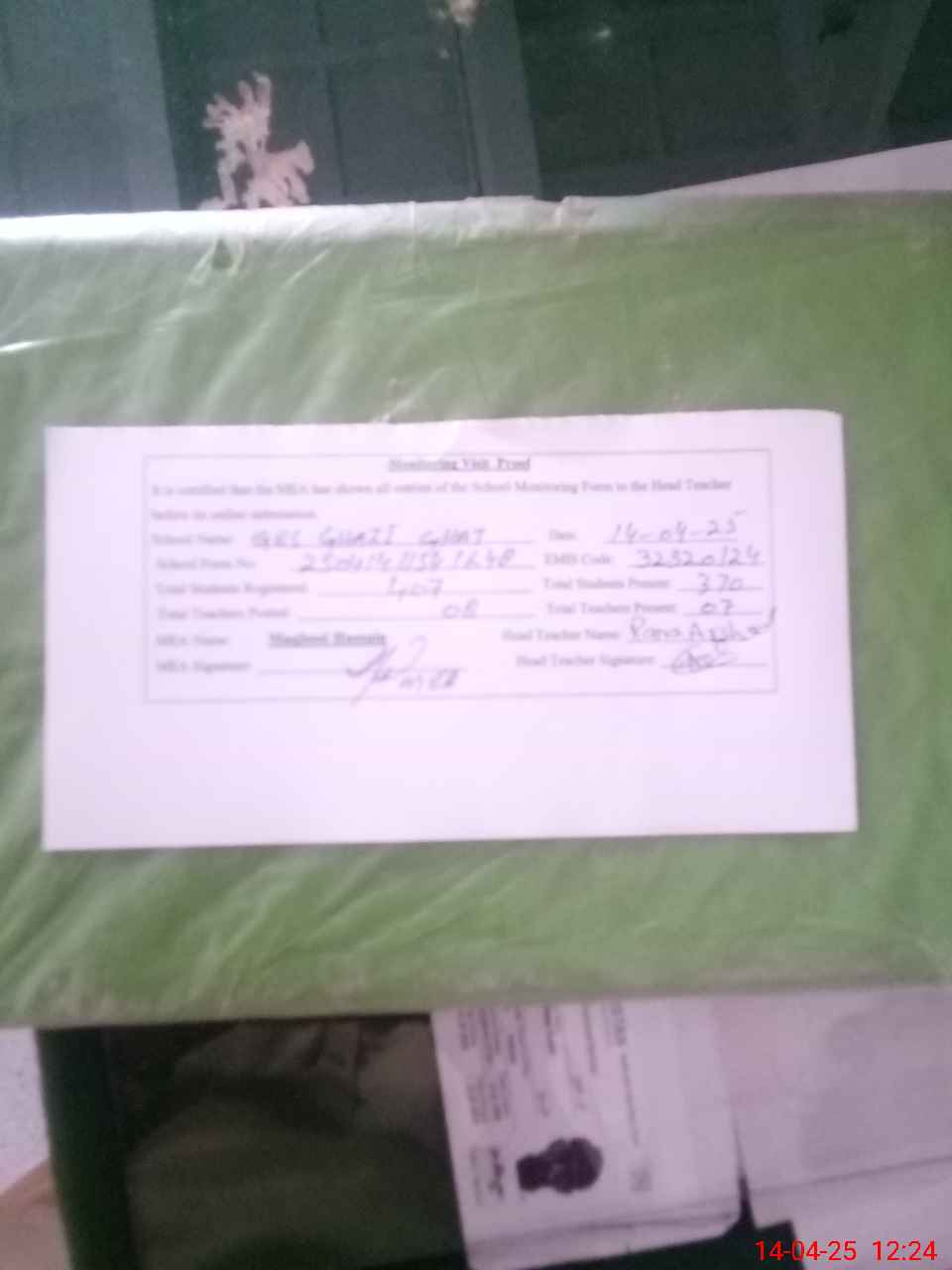 | Attendance Register | Head Teacher | MEA with School | Visit Proof |