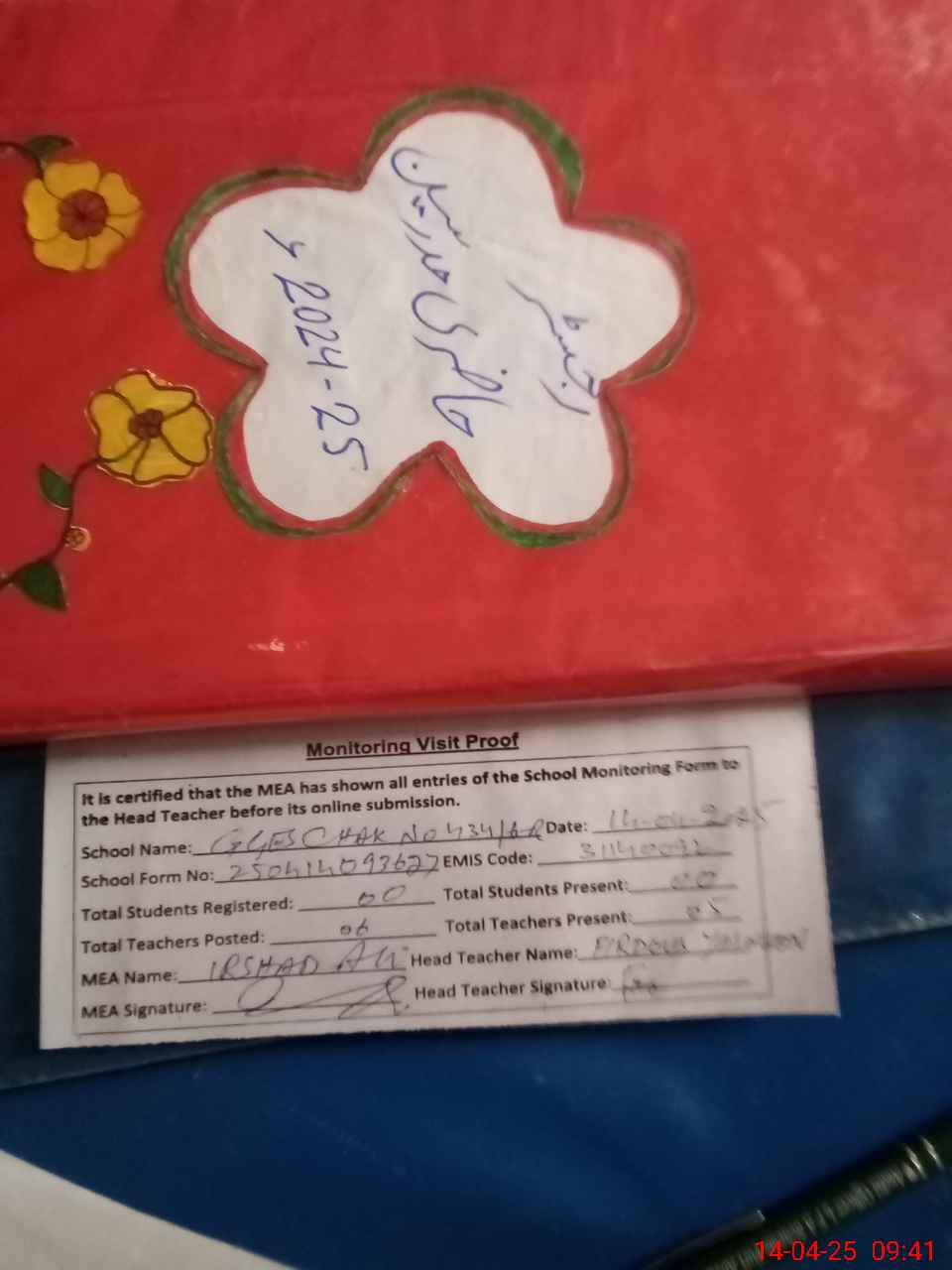 | Attendance Register | Head Teacher | MEA with School | Visit Proof |