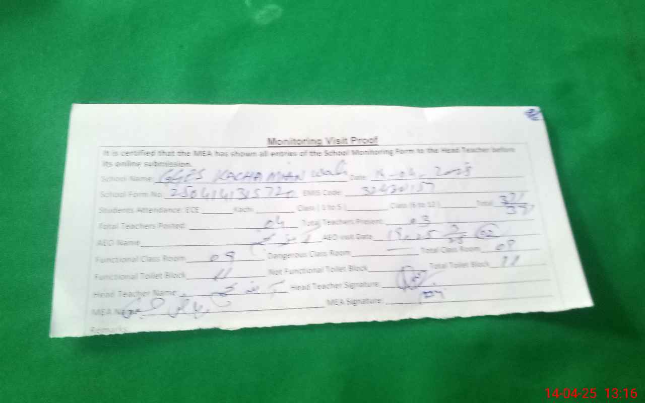 | EMIS Code: 32430157 | Name of School: GGES KACHA MIAN WALI | |||