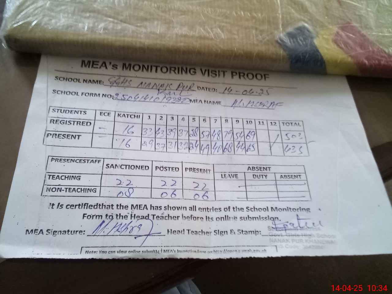 | EMIS Code: 36420048 | Name of School: GGHS NANAK PUR, KHANEWAL | |||