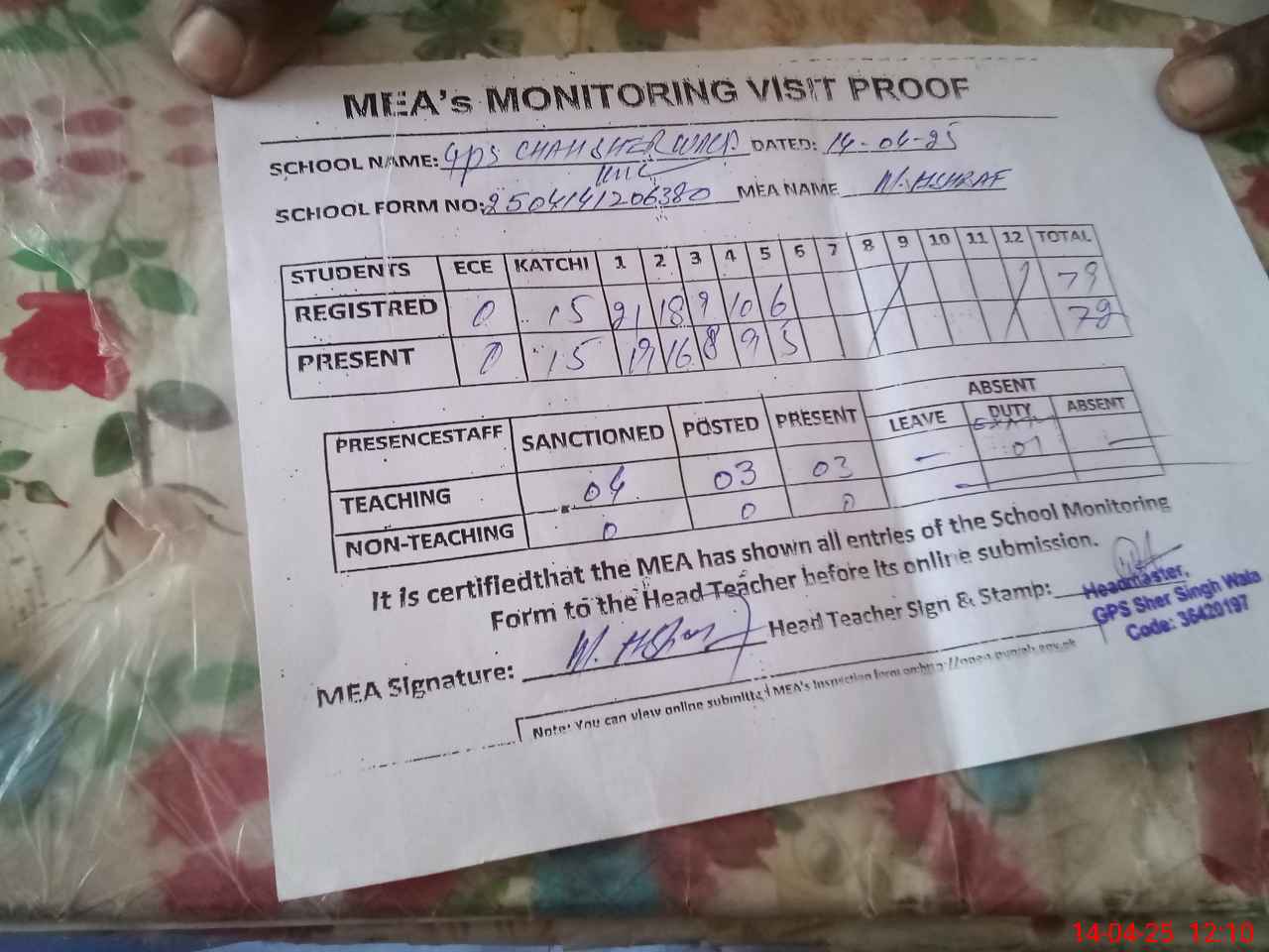 | EMIS Code: 36420197 | Name of School: GPS CHAH SHER SINGH WALA, KHANEWAL | |||