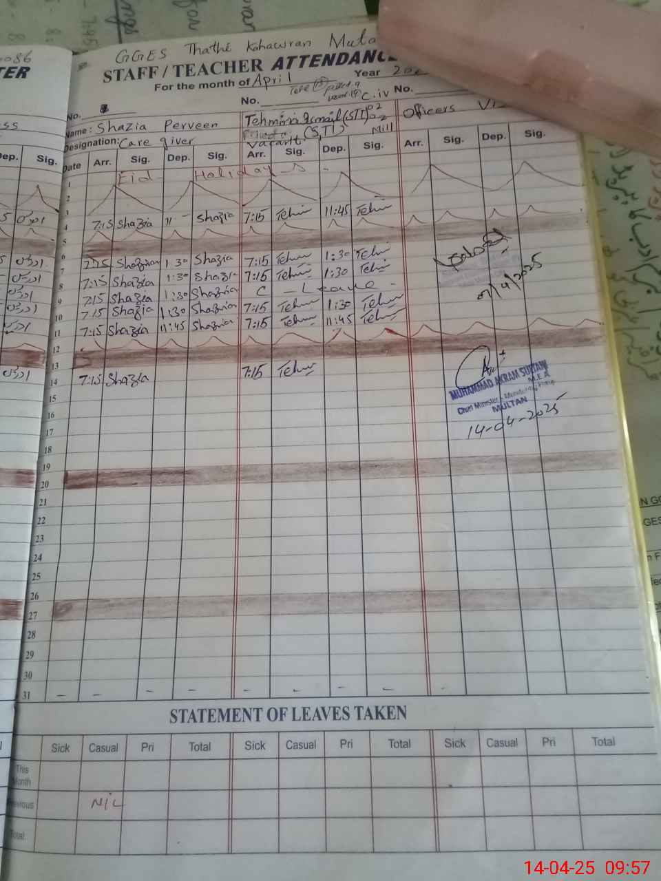 | 36**** | Sh**** Kr**** | PST | Regular | 0 | 0 | 0 | 0 | 0 | 0 | 0 | 0 | 0 | Exam Duty |