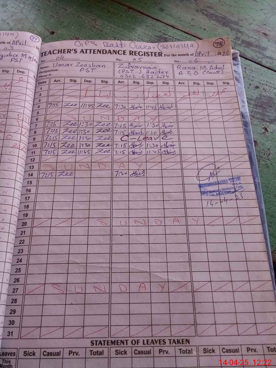 | 36**** | Mu**** Ju**** | PST | Regular | 0 | 0 | 0 | 0 | 0 | 0 | 0 | 0 | 0 | Exam Duty |