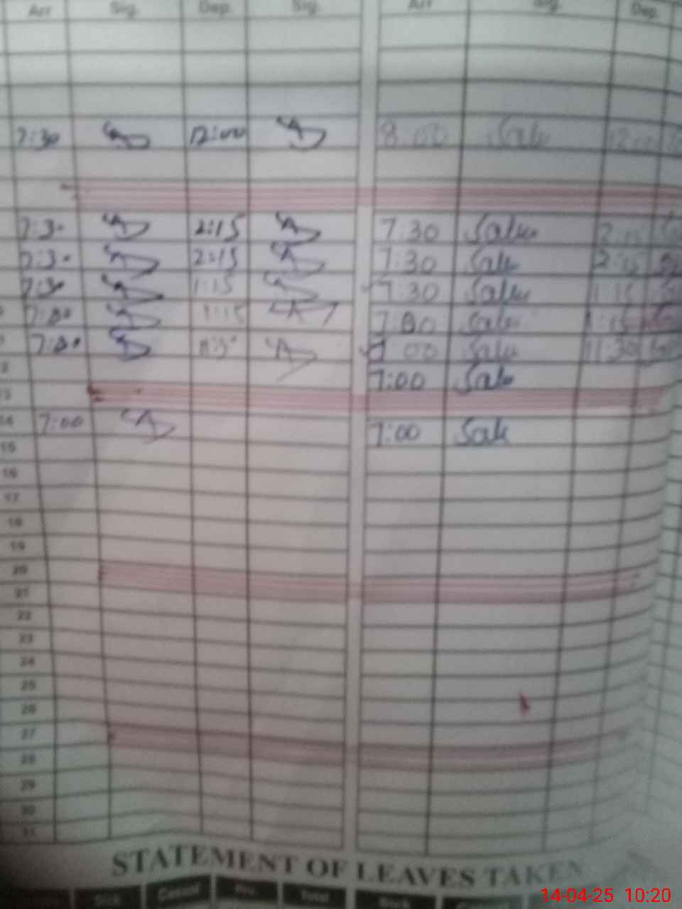 | Leave | Duty | Absent | Maternity | Medical | Ex- Pak |