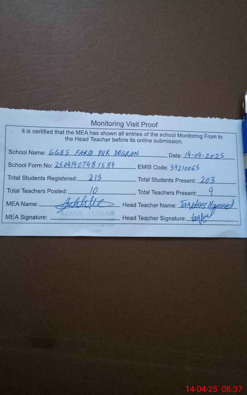 | EMIS Code: 39210065 | Name of School: GGES FARID PUR DOGRAN | |||