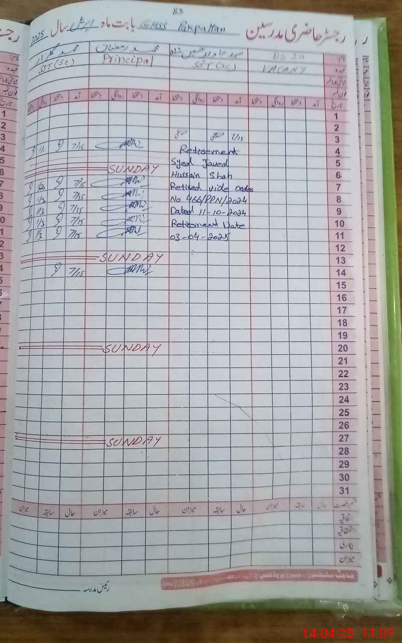 | Name: Mu**** Za**** Designation: (School Headmaster's/Headmistress's) Incharge Principal Phone/Cell Number: 03**** |