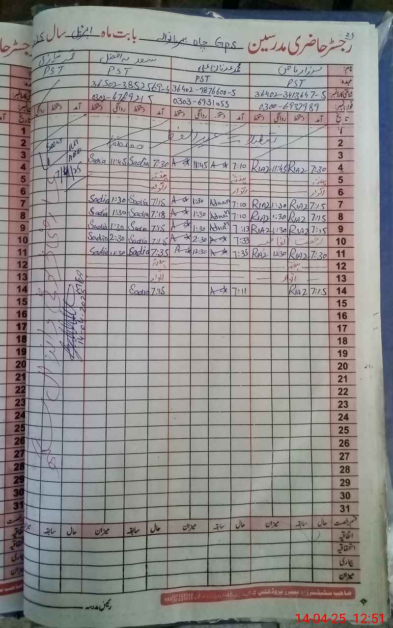 | Name: MI**** RI**** BA**** Designation: (School Headmaster's/Headmistress's) PST Phone/Cell Number: 03**** |