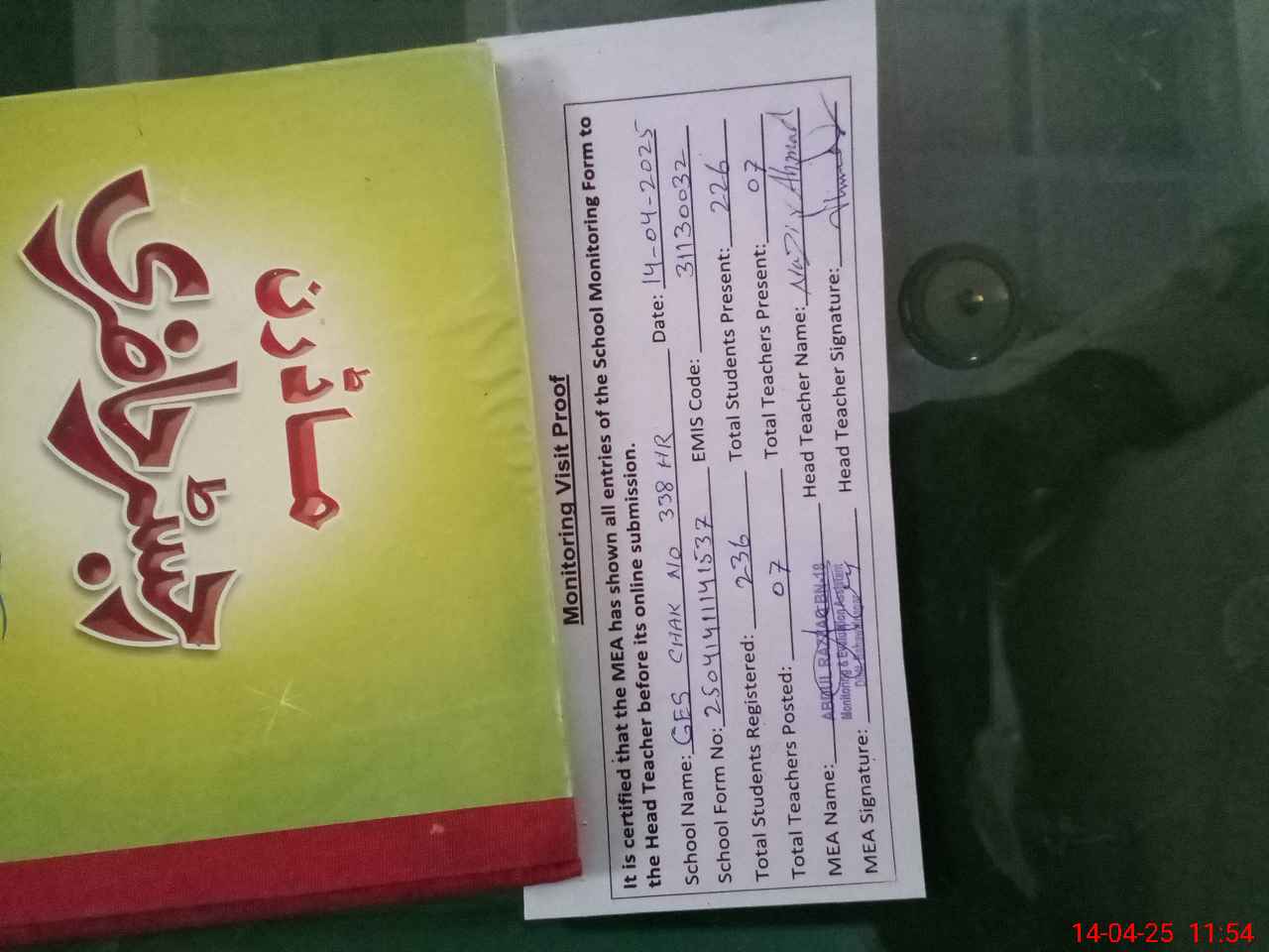 | EMIS Code: 31130032 | Name of School: GES CHAK 338/HR | |||