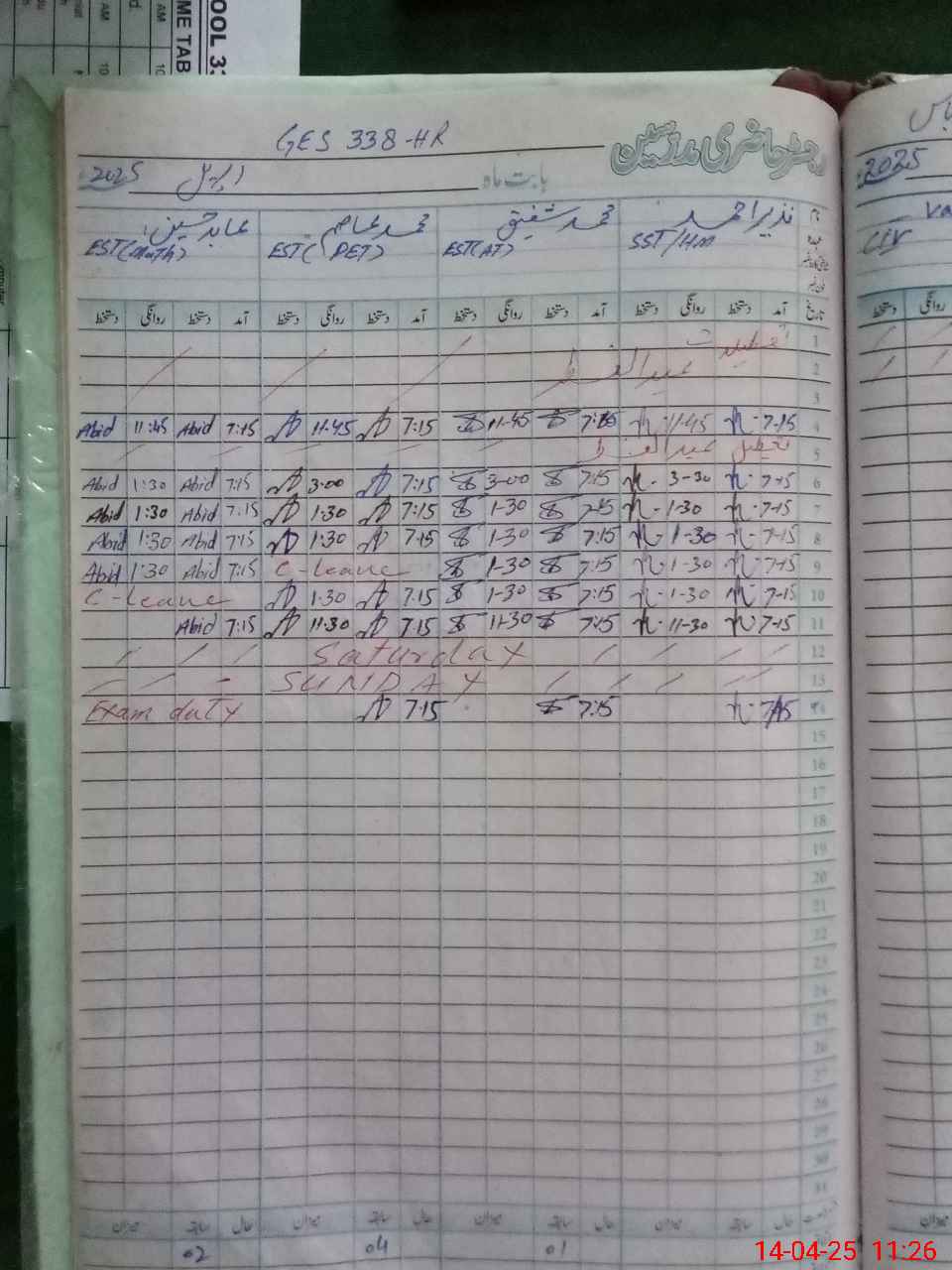 | 31**** | Mu**** Qa**** Ab**** | ESE | Contract | 0 | 0 | 0 | 0 | 0 | 0 | 0 | 0 | 0 | Exam Duty |
