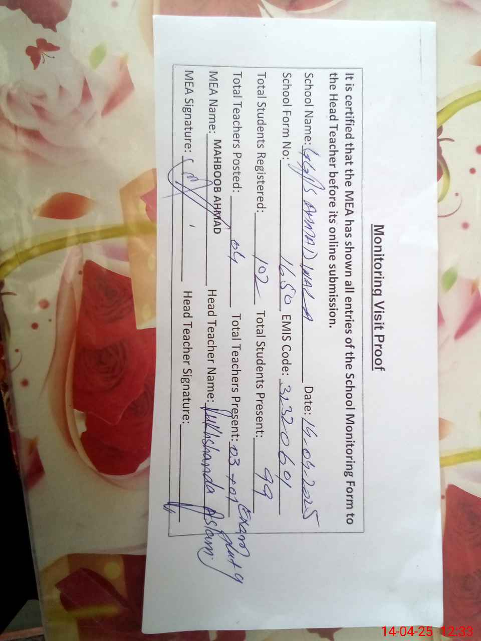 | EMIS Code: 32320601 | Name of School: GGPS AHMAD WALA | |||