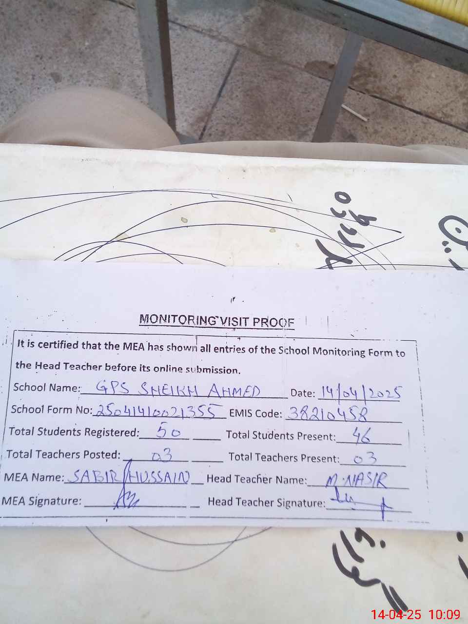 | EMIS Code: 38210458 | Name of School: GPS SHEIKH AHMAD | |||