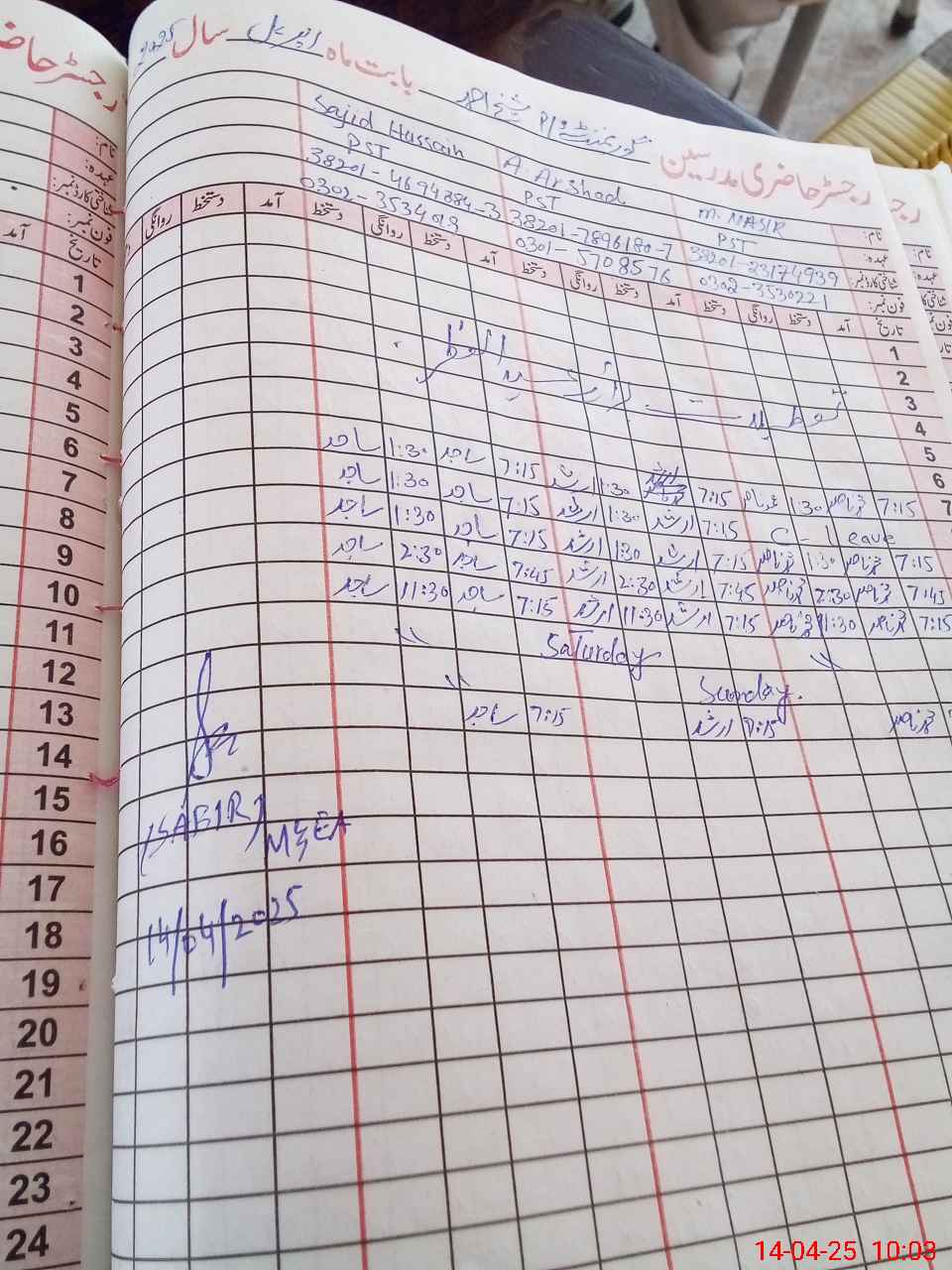 | Name: Mu**** Na**** Designation: (School Headmaster's/Headmistress's) PST Phone/Cell Number: 03**** |