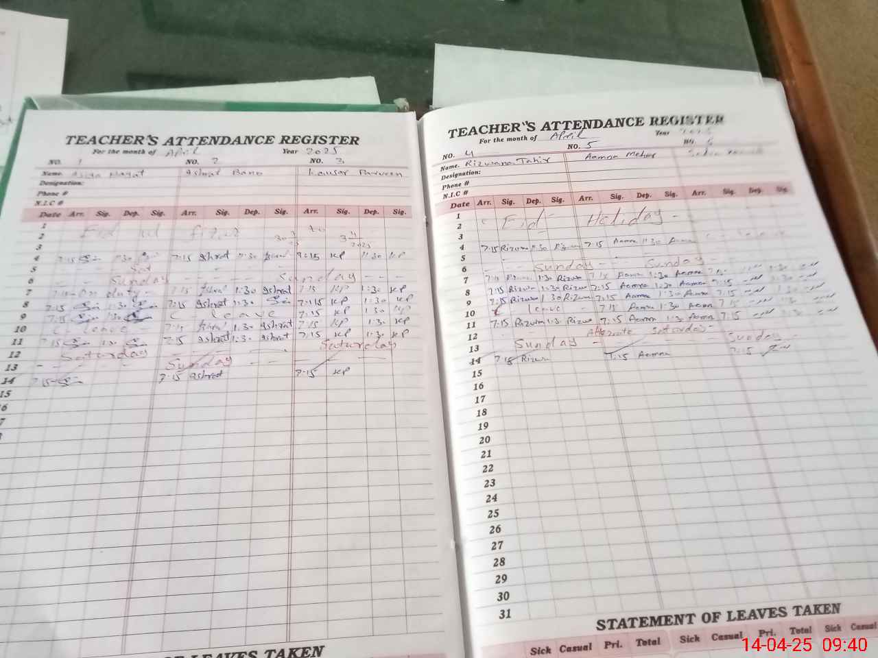 | CNIC | Full Name | Designation | R/C | Absence During Last Calender Month |