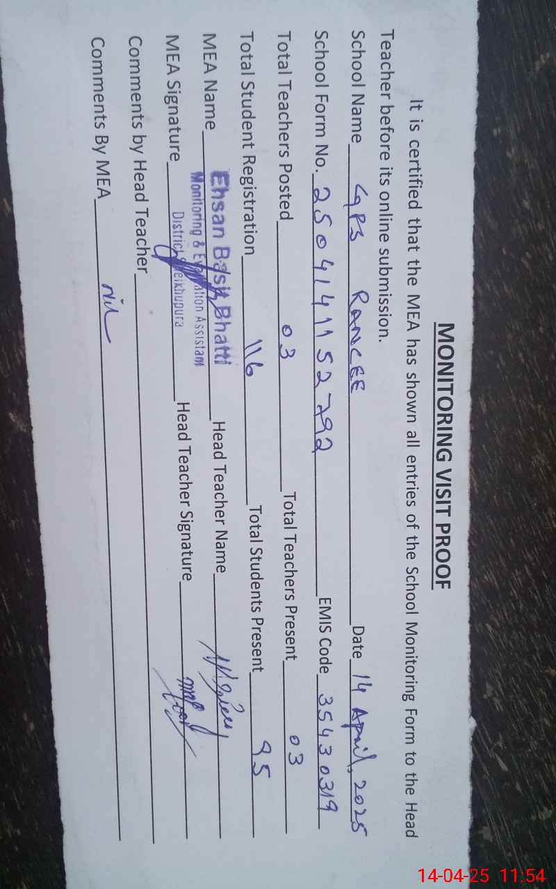 | EMIS Code: 35430319 | Name of School: GPS RANCEE | |||