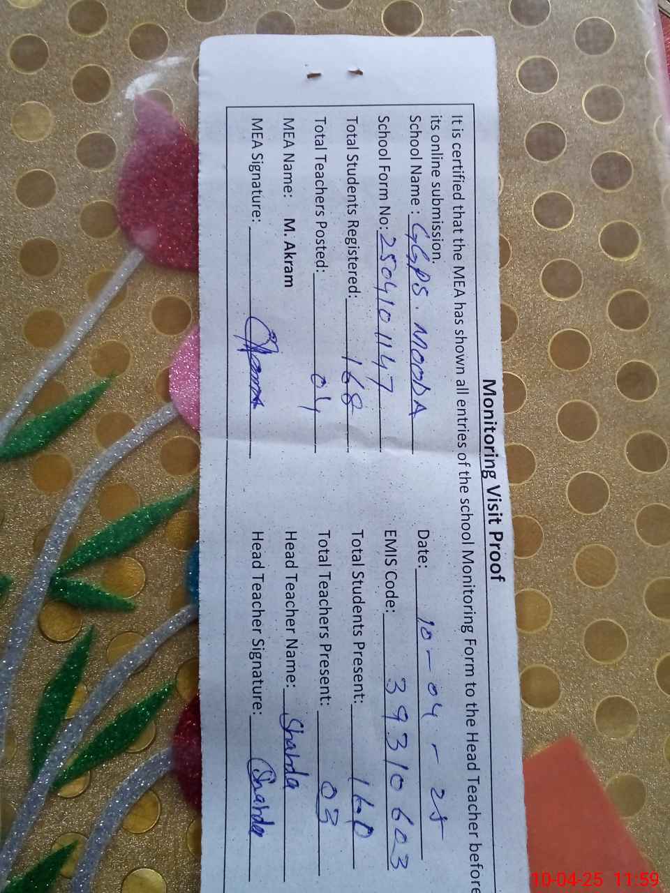 | EMIS Code: 39310603 | Name of School: GGPS CHAK MOODA | |||