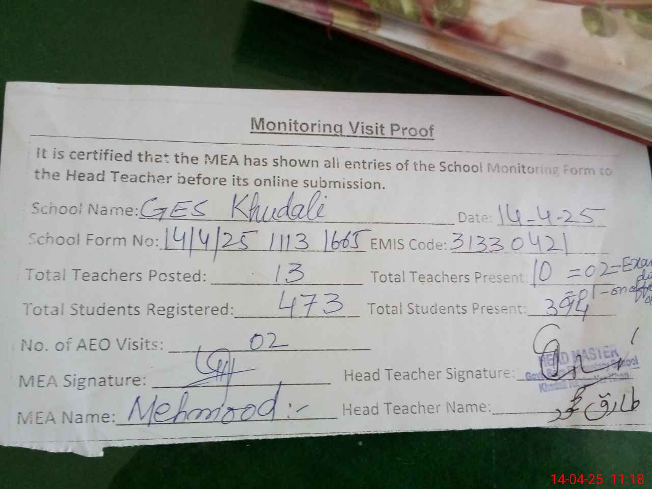 | EMIS Code: 31330421 | Name of School: GES KHUDALI | |||