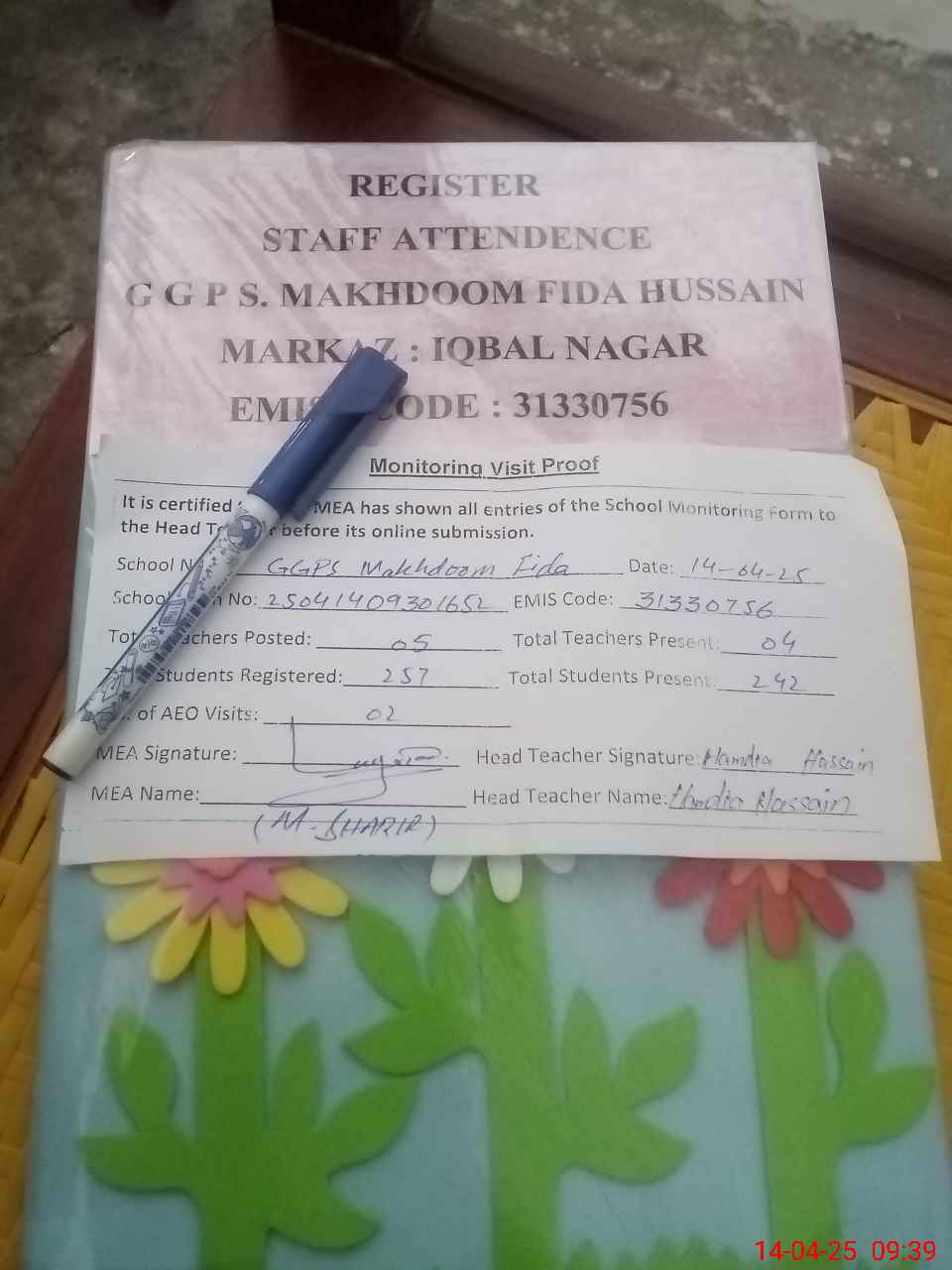 | EMIS Code: 31330756 | Name of School: GGPS MAKHDOOM FIDA HUSSAIN | |||