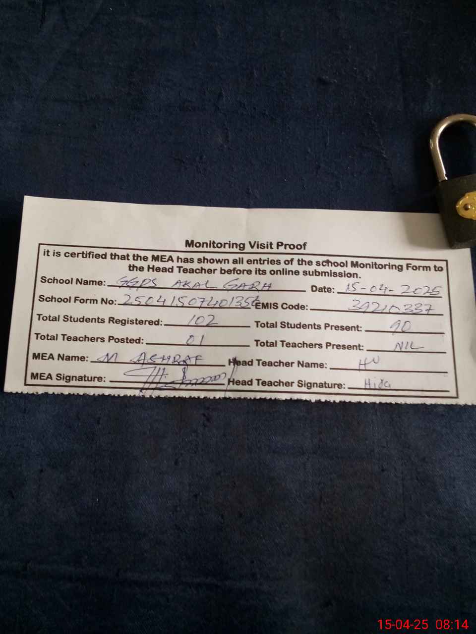 | EMIS Code: 39210337 | Name of School: GGPS AKAL GARH | |||