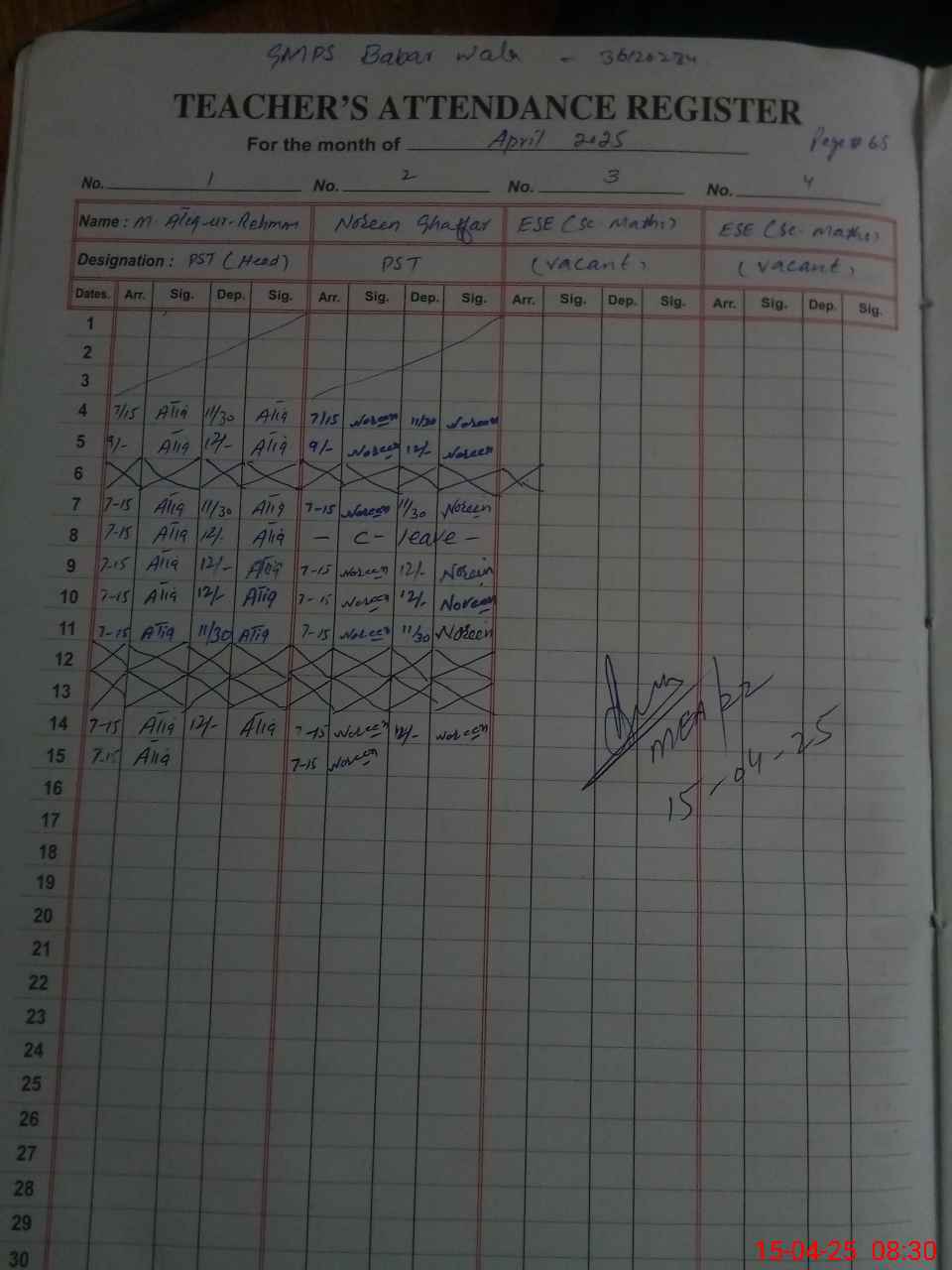 | Name: M.**** URRE**** Designation: (School Headmaster's/Headmistress's) PST Phone/Cell Number: 03**** |