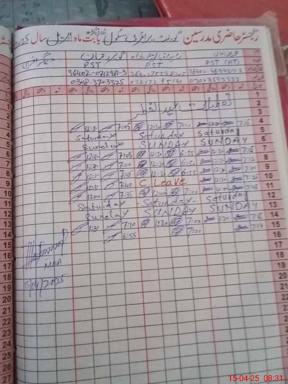 | Name: Im**** Kh**** Designation: (School Headmaster's/Headmistress's) PST Phone/Cell Number: 03**** |