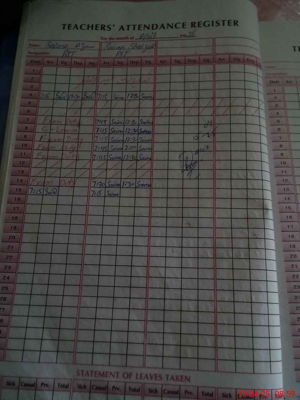 | Name: SA**** AZ**** Designation: (School Headmaster's/Headmistress's) PST Phone/Cell Number: 03**** |