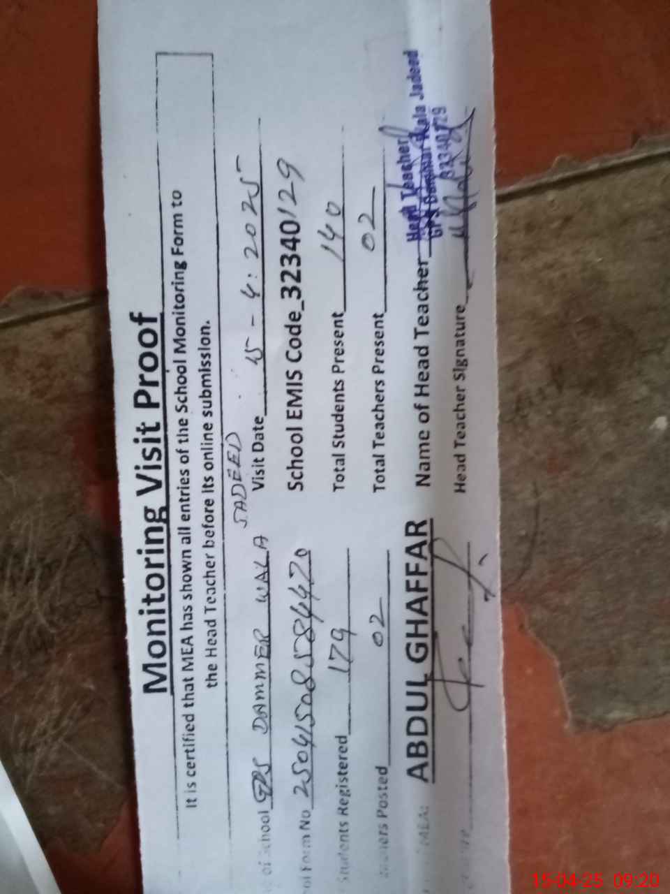 | EMIS Code: 32340129 | Name of School: GPS DAMMAR WALA JADEED | |||